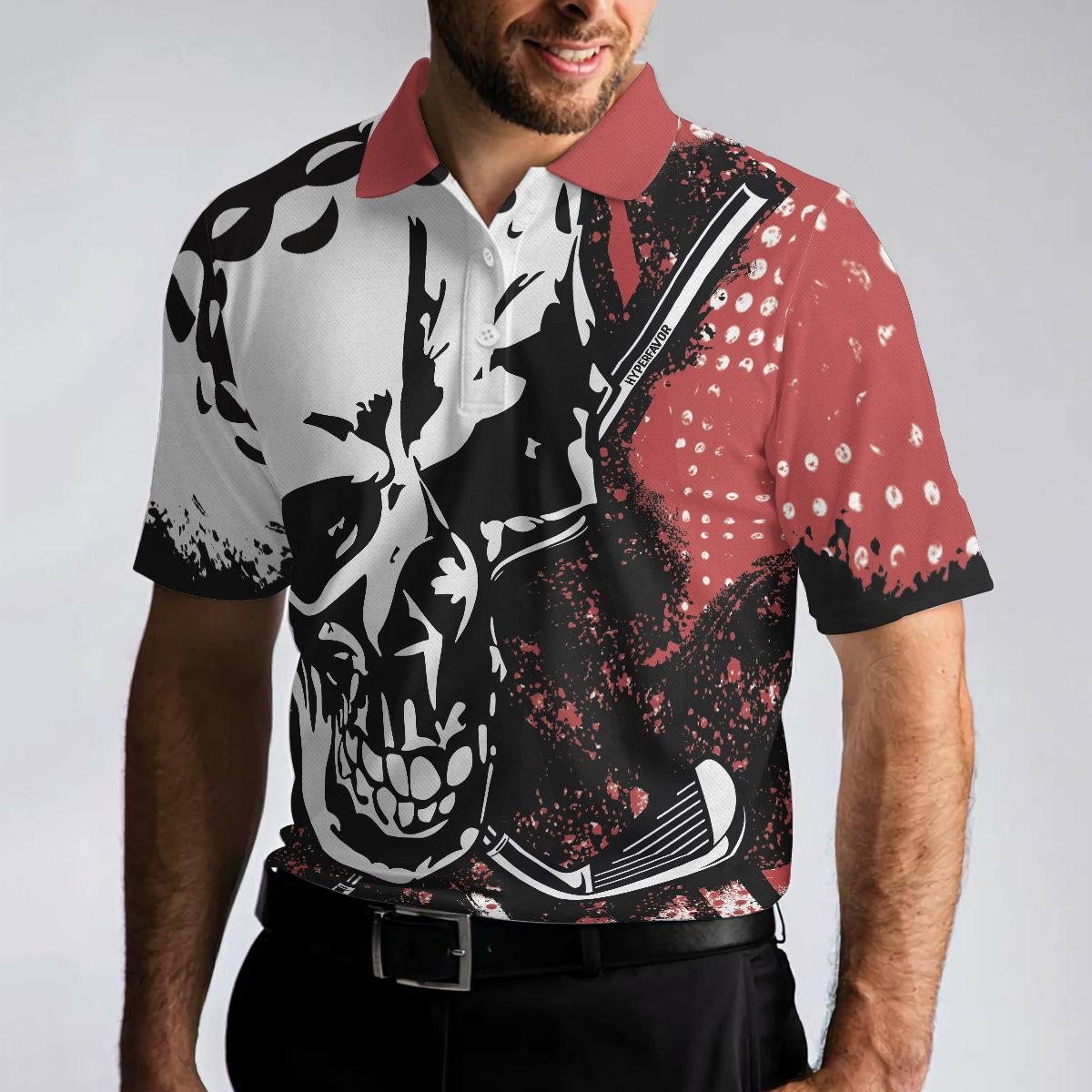 Blade Mens Golf Red Short Sleeve Golf Polo Shirt, Skull Polo Shirt, Best Golf Shirt For Men
