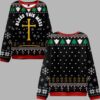 This striking black, red, and white sweater takes the traditional “ugly Christmas sweater” style and fills it with an air of humorous, honest acceptance. The design features classic festive patterns—including snowflakes, trees, and geometric motifs—in a cozy palette. The centerpiece is a bold, golden cross framed by the honest, all-caps text: “BLESS THIS MESS.” The meaning of this design is rooted in witty, relatable emotional commentary and spiritual humor. It cleverly juxtaposes a sacred symbol (the cross) with a secular, universally understood phrase about everyday chaos. It transforms the cozy garment into a fun, public acknowledgment that the holidays are often stressful, messy, and far from the idealized picture—and that’s perfectly okay.