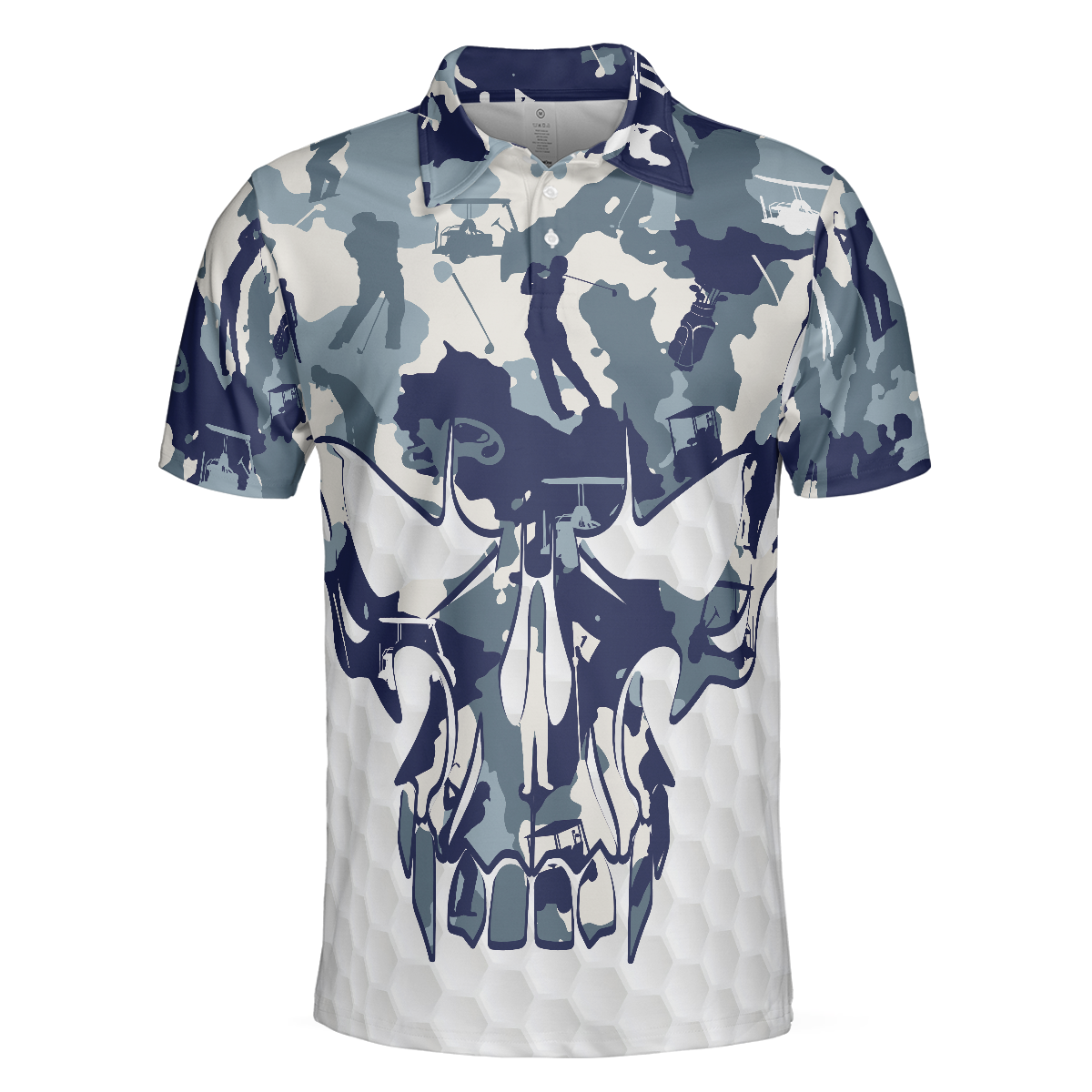 Blue And White Camouflage Golf Set Short Sleeve Skull Golf Polo Shirt, Best Camo Golf Shirt For Men