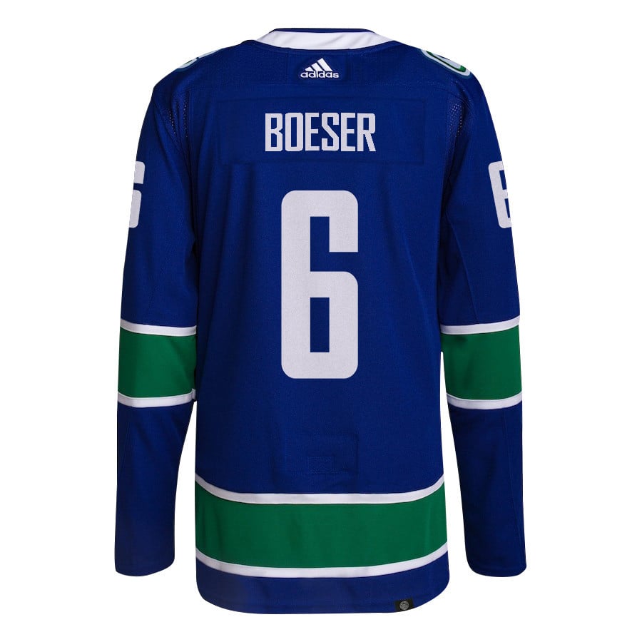 Brock Boeser 6 Vancouver Canucks 2024 NHL Playoffs Patch Home Hockey Jersey – Men, Blue – JS477