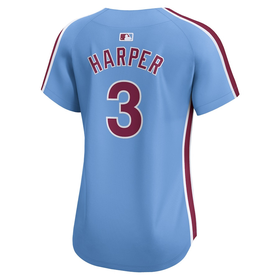Bryce Harper 3 Philadelphia Phillies Alternate Limited Women Baseball Jersey – Light Blue