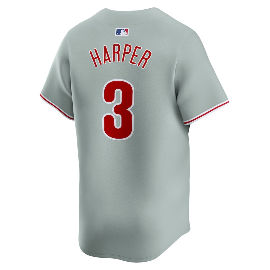 Bryce Harper 3 Philadelphia Phillies Away Limited Player Men Baseball Jersey – Gray