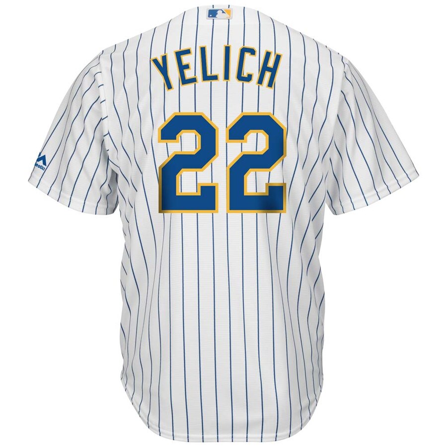 Christian Yelich Milwaukee Brewers Majestic Alternate Official Cool Base Player Baseball Jersey – White Royal