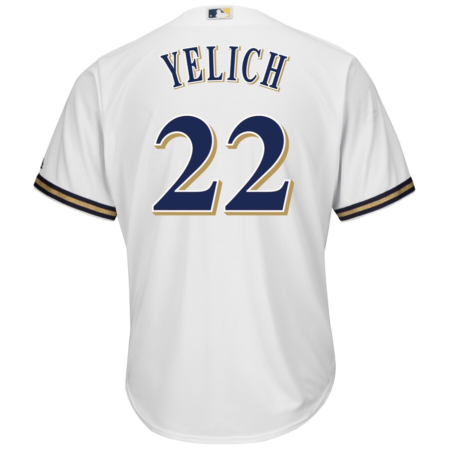 Christian Yelich Milwaukee Brewers Majestic Official Cool Base Player Baseball Jersey – White