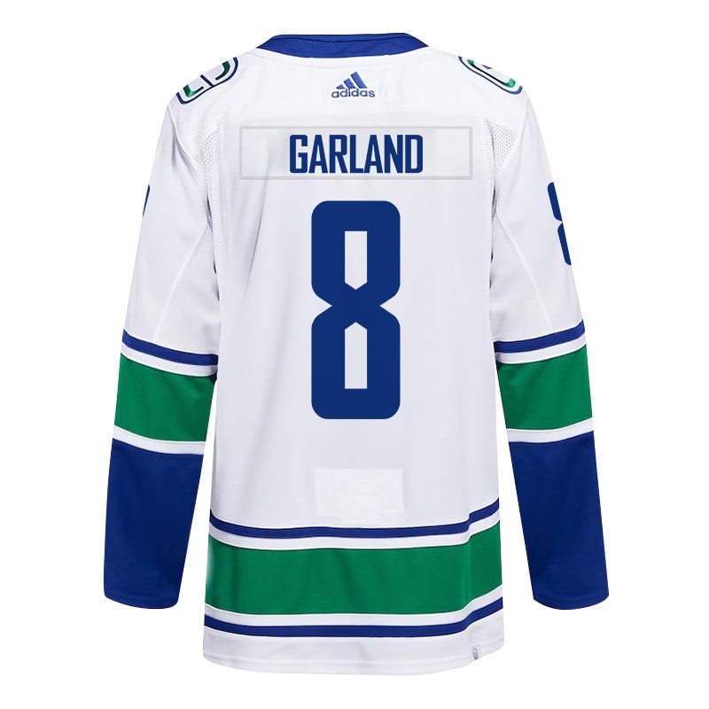 Conor Garland 8 Vancouver Canucks 2024 NHL Playoffs Patch Away Hockey Jersey – Men, White – JS737