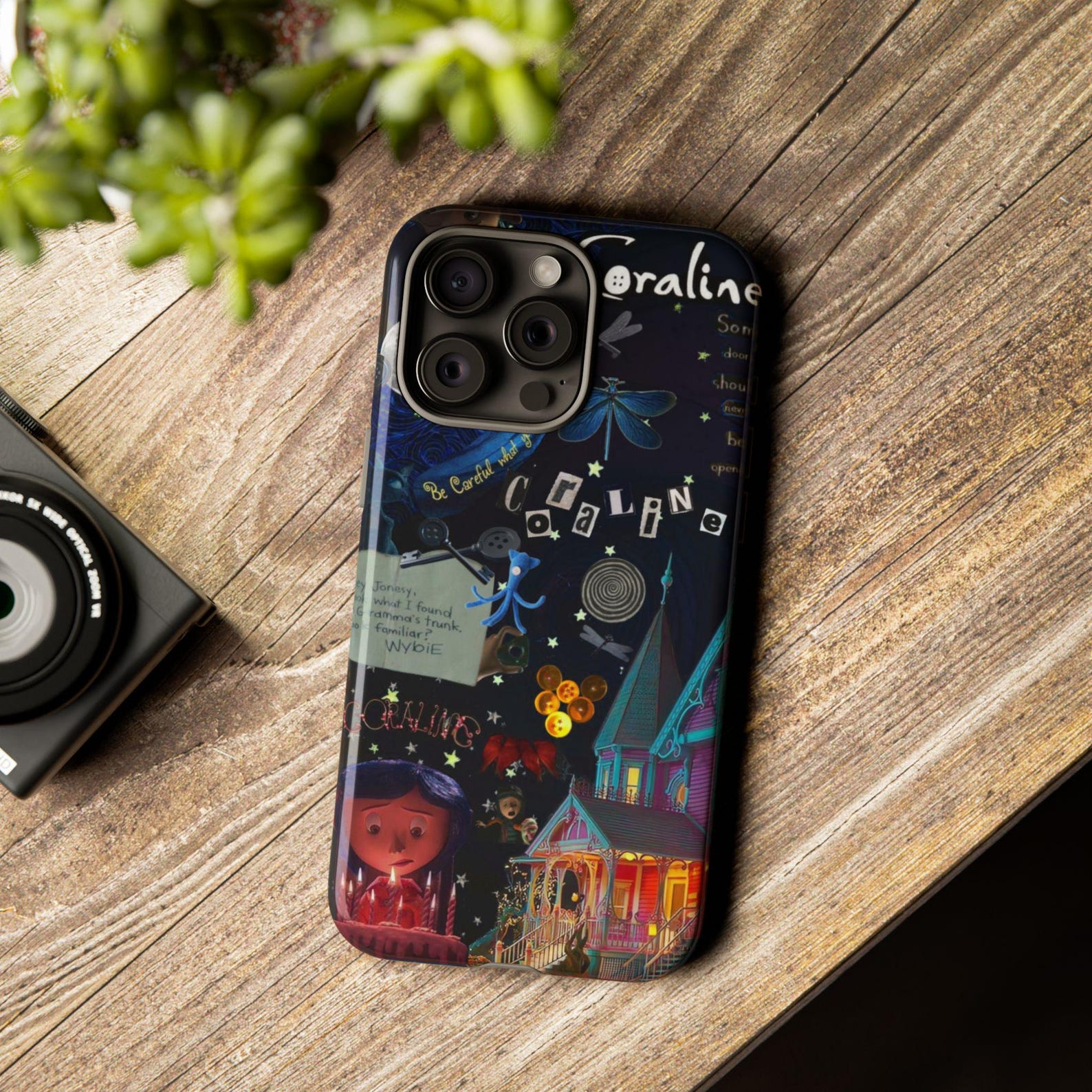 Coraline Horror Movie Phone Case, Retro Halloween Cartoon Phone Cover, phone 17, 16 15,14,13,12, Halloween Gift