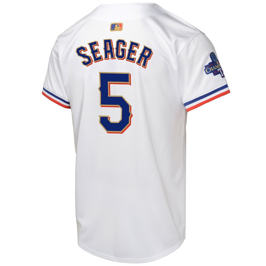 Corey Seager 5 Texas Rangers 2024 YOUTH Gold Collection Limited Baseball Jersey – White – JS710