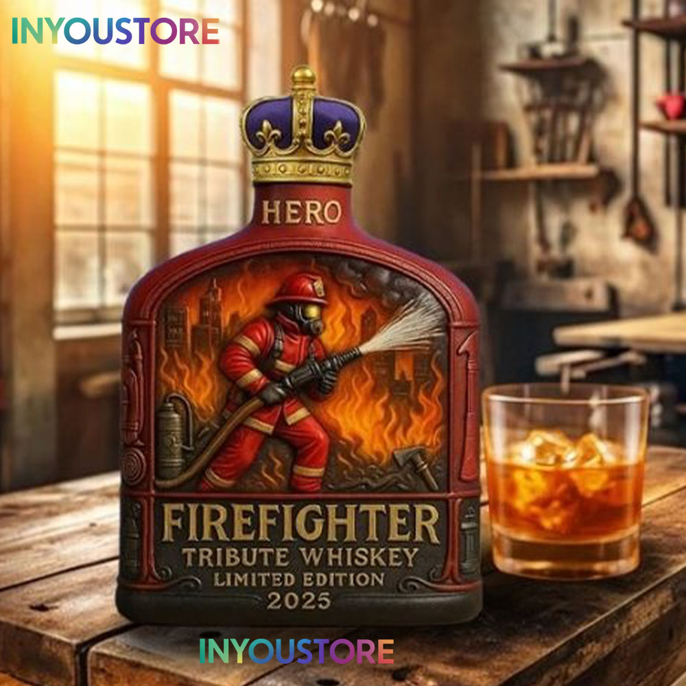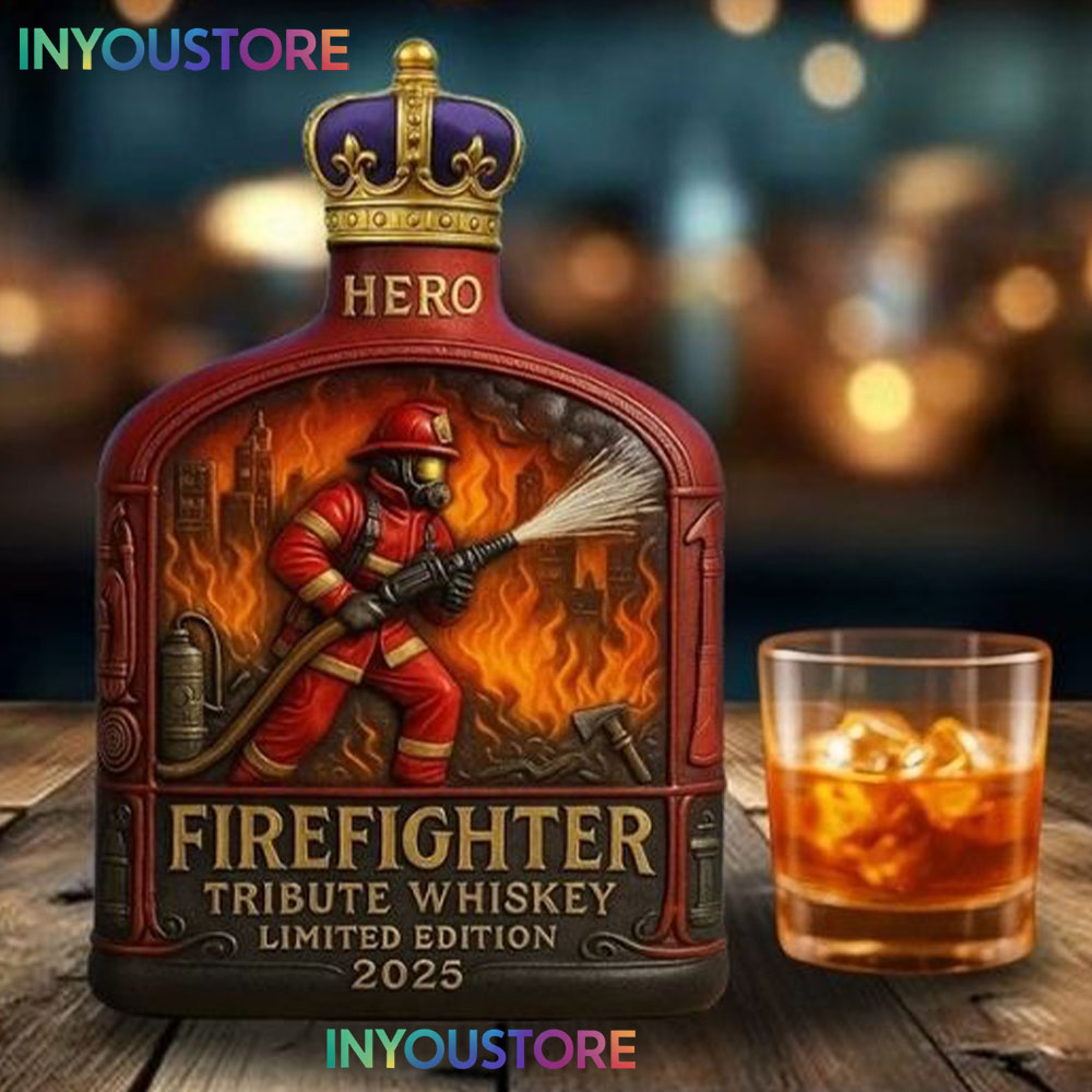 Crafted from high-quality glass with bold, detailed firefighter artwork, this bottle is perfect for holding whiskey, bourbon, or other favorite spirits. Whether displayed in a home bar, firehouse, office, or memorial space, it serves as both a functional bottle and a meaningful symbol of honor.