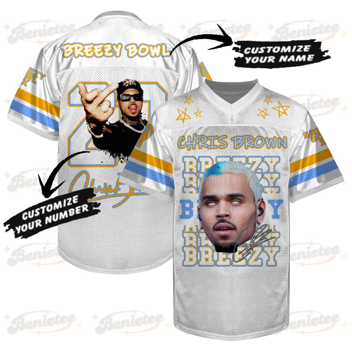 Custom Chris Brown Breezy Bowl Football Jersey, R&B Concert Merch Brown Breezy Bowl XX Tour 2025 Football Jersey