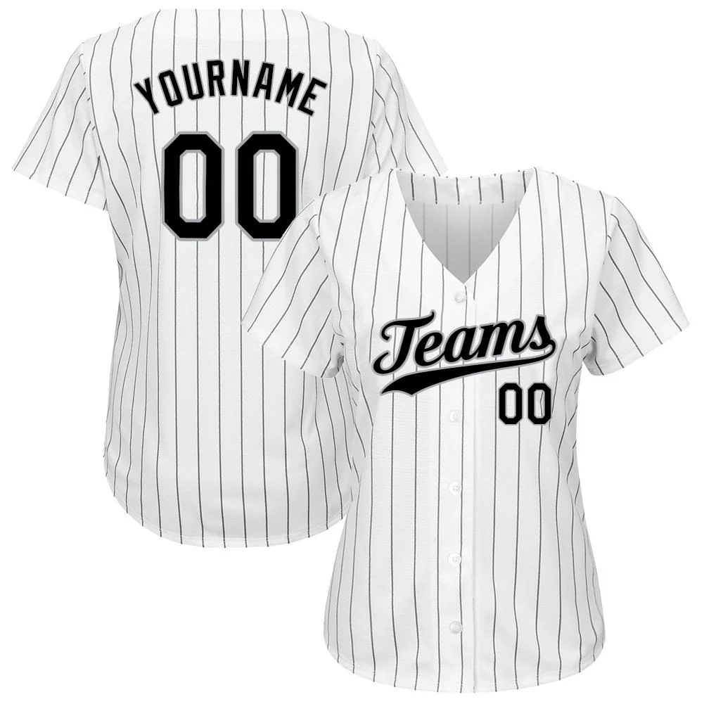 Be the first to review “Custom White Black Pinstripe Black-Gray Authentic Baseball Jersey”