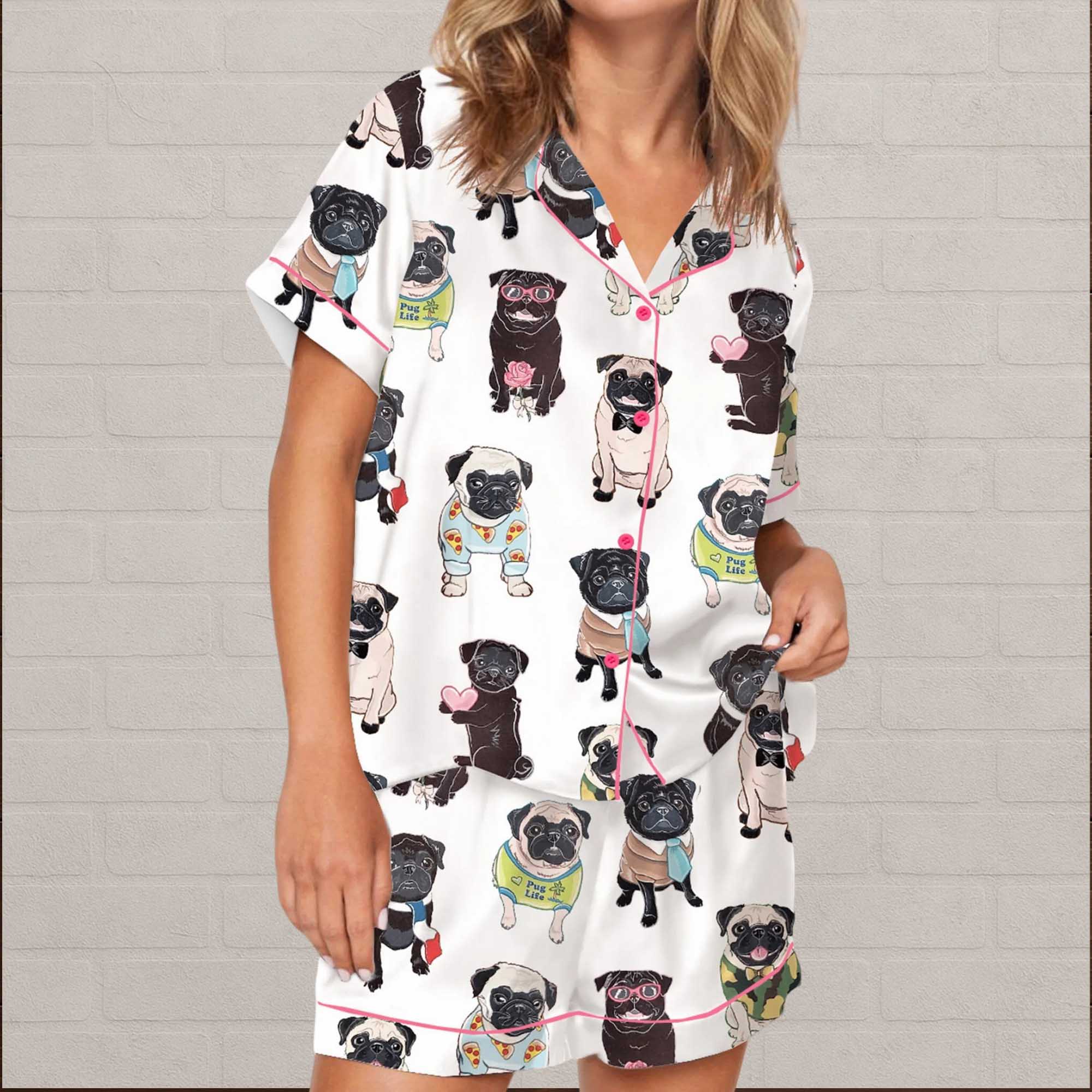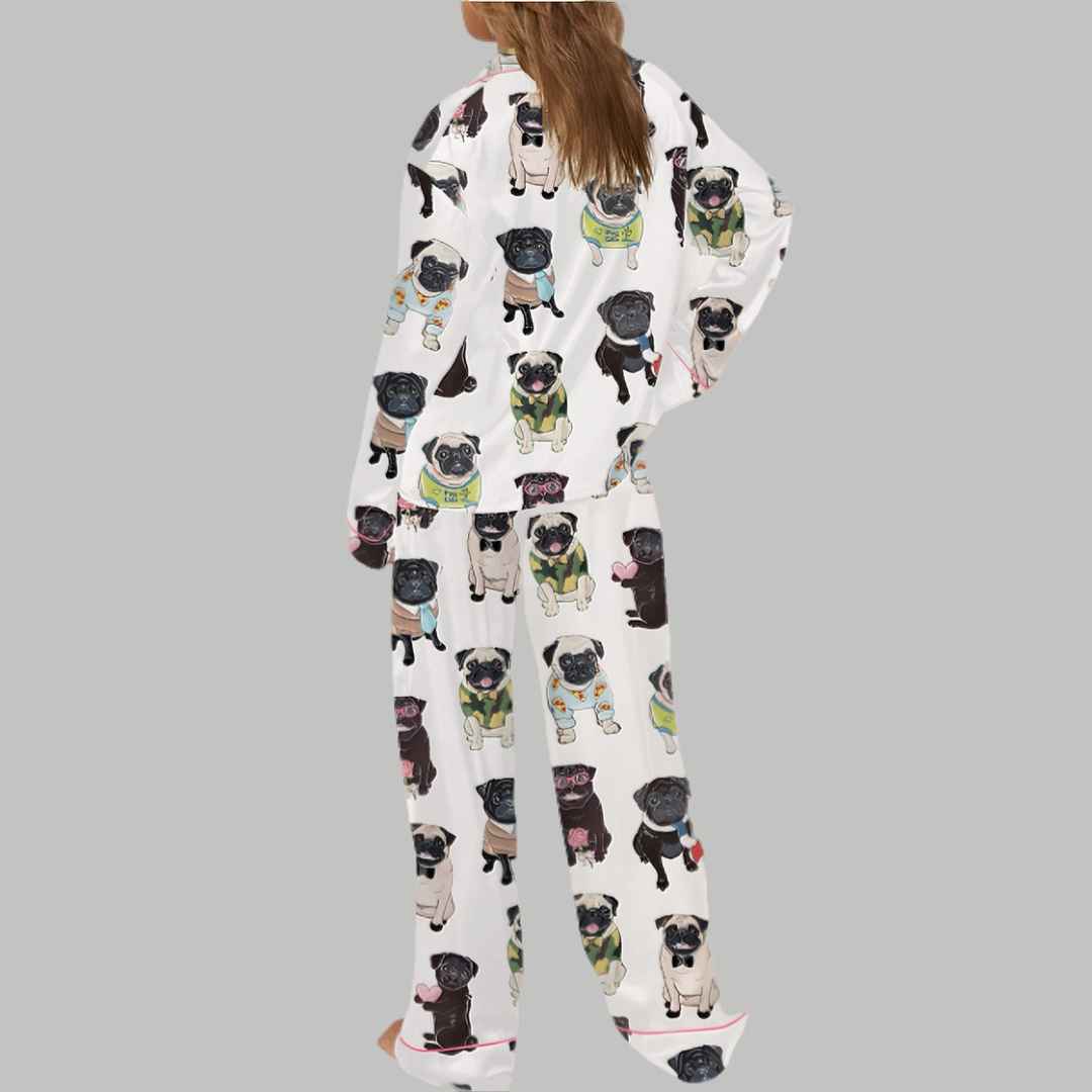 Cute Pug Silky Satin Pajama Set