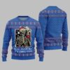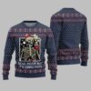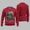 The star of the show is a cheerful skeleton, decked out in a Santa hat, enjoying a steaming hot beverage from a festive red mug. With candy canes cleverly integrated into its ribcage and a serene expression, this bony buddy is the official mascot for anyone just trying to get through December. The bold text “DEAD INSIDE BUT IT’S CHRISTMAS” underneath says everything you don’t have to. Set against a classic black background with intricate red and white Fair Isle patterns on the chest, cuffs, and hem, this sweater is the perfect paradox of morbid and merry.