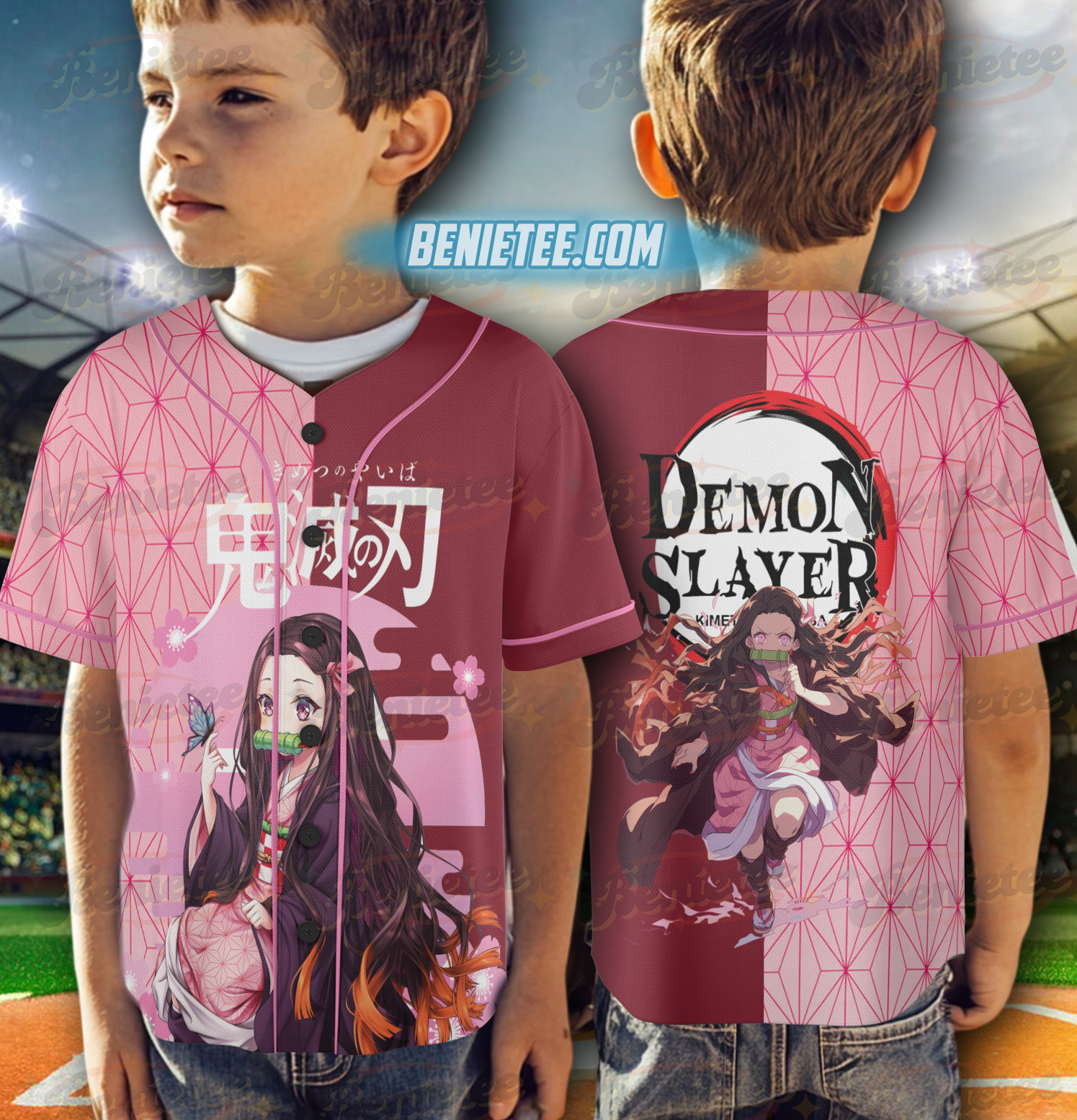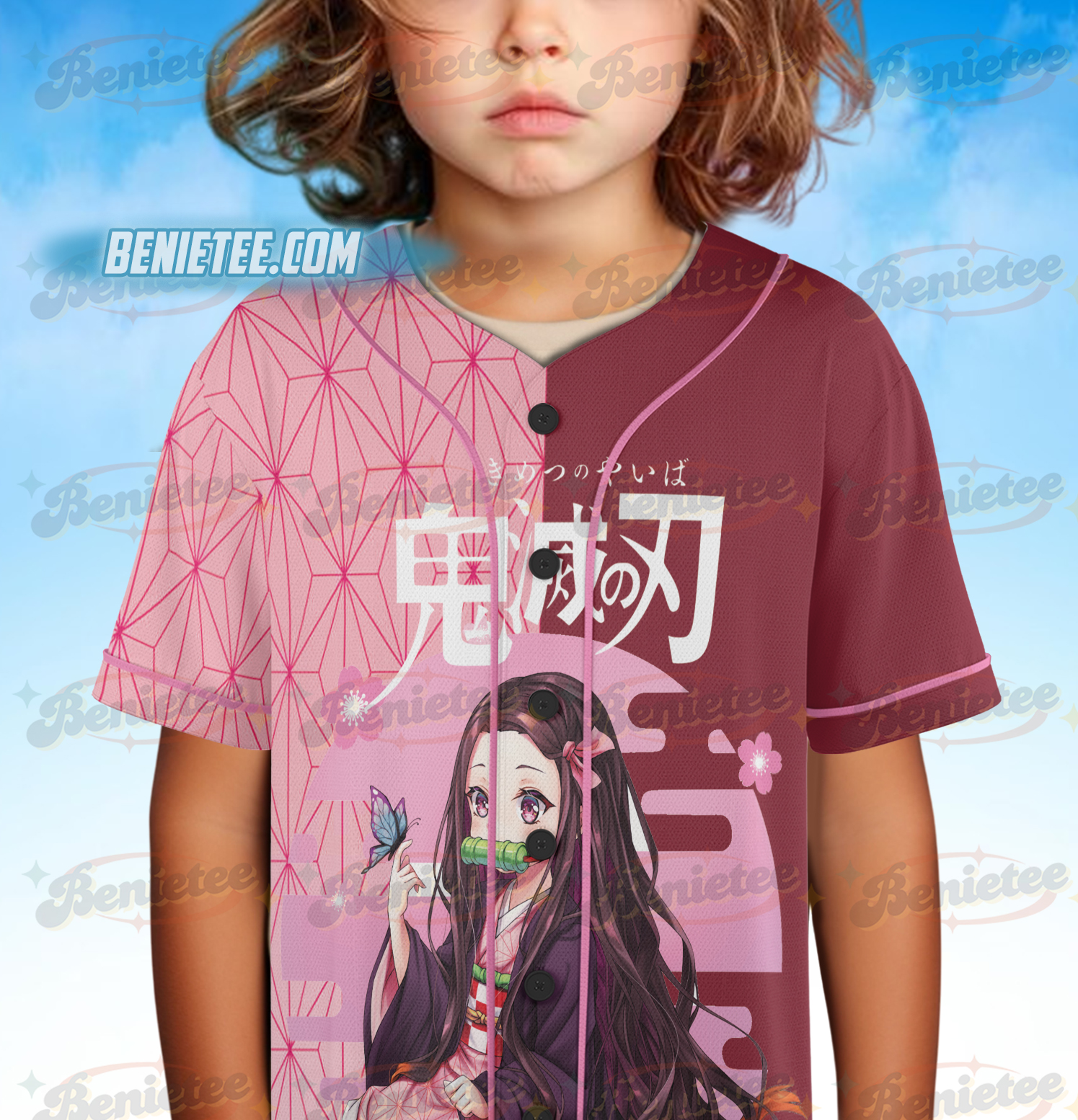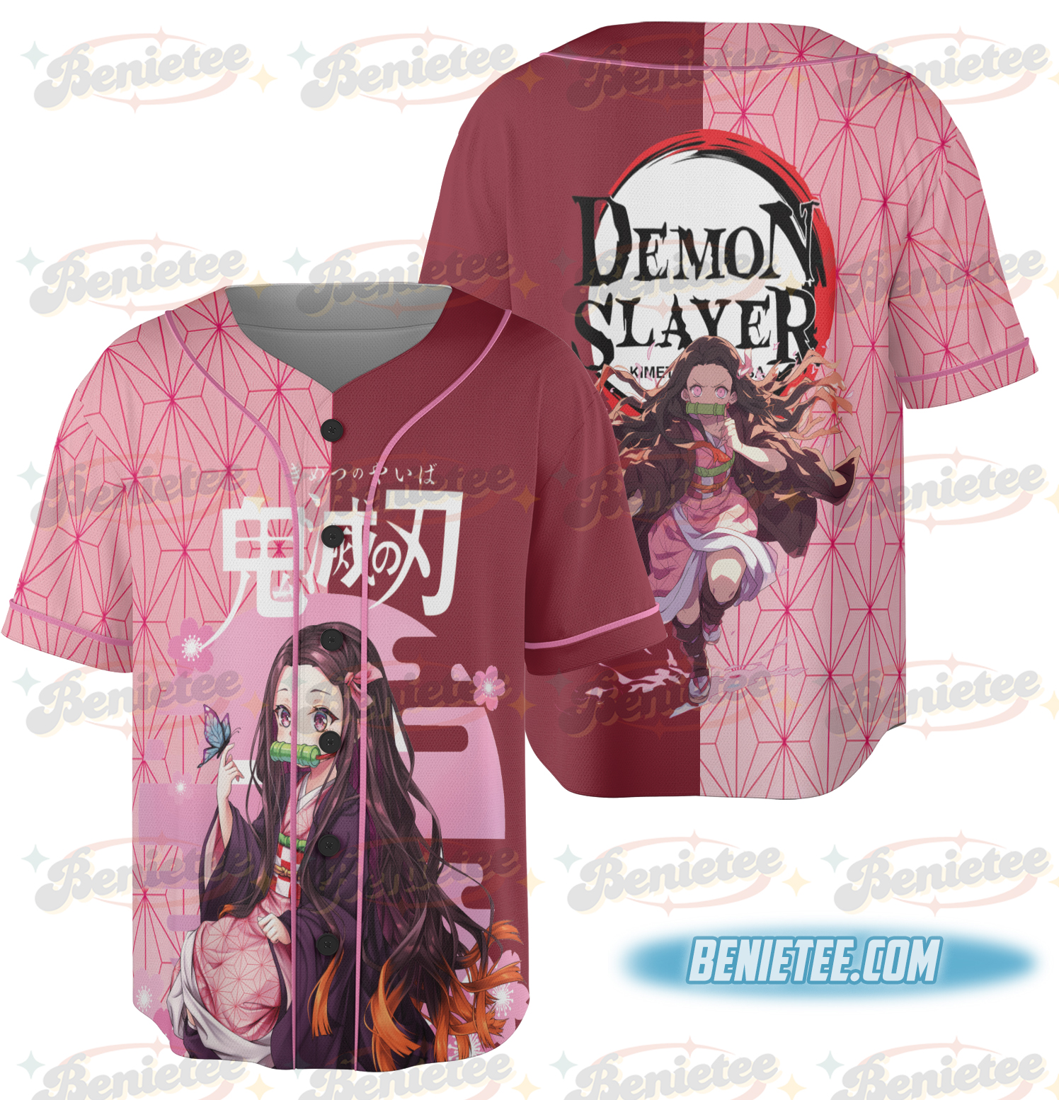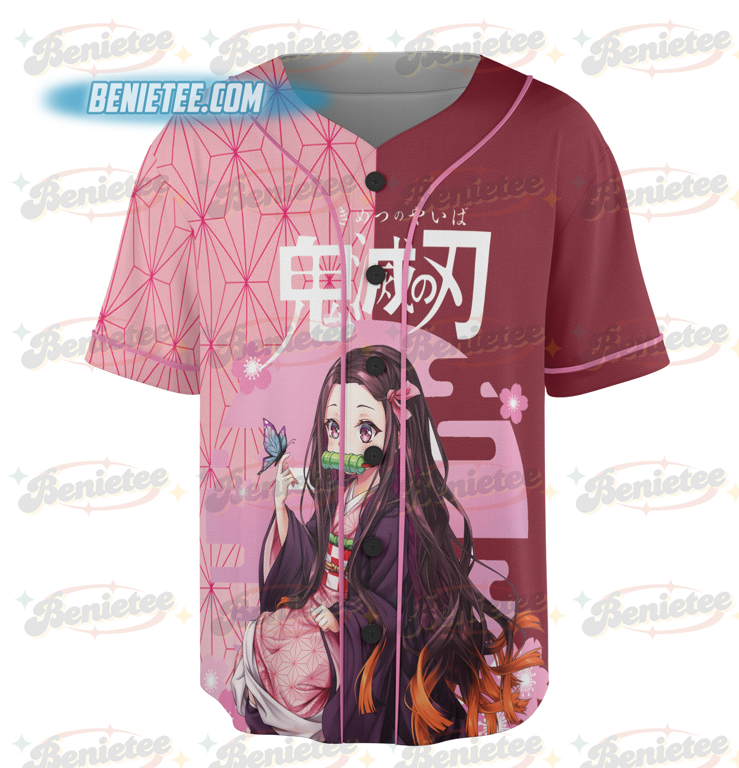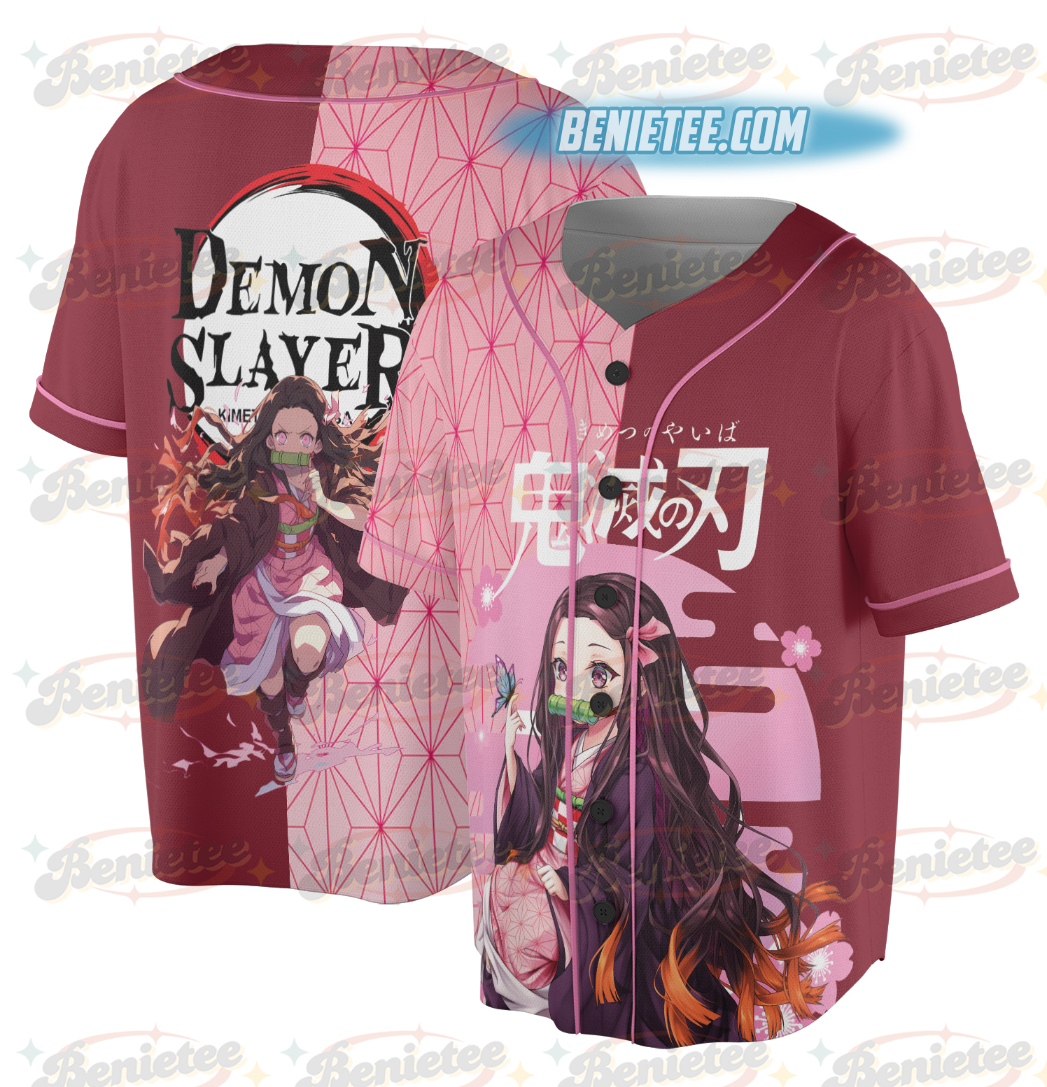 Demon Slayer Anime Jersey Kamado Nezuko Baseball Short Sleeve Washed Manga Customizable Quick-Drying Fabric Comfortable Versatile for Any Occasion