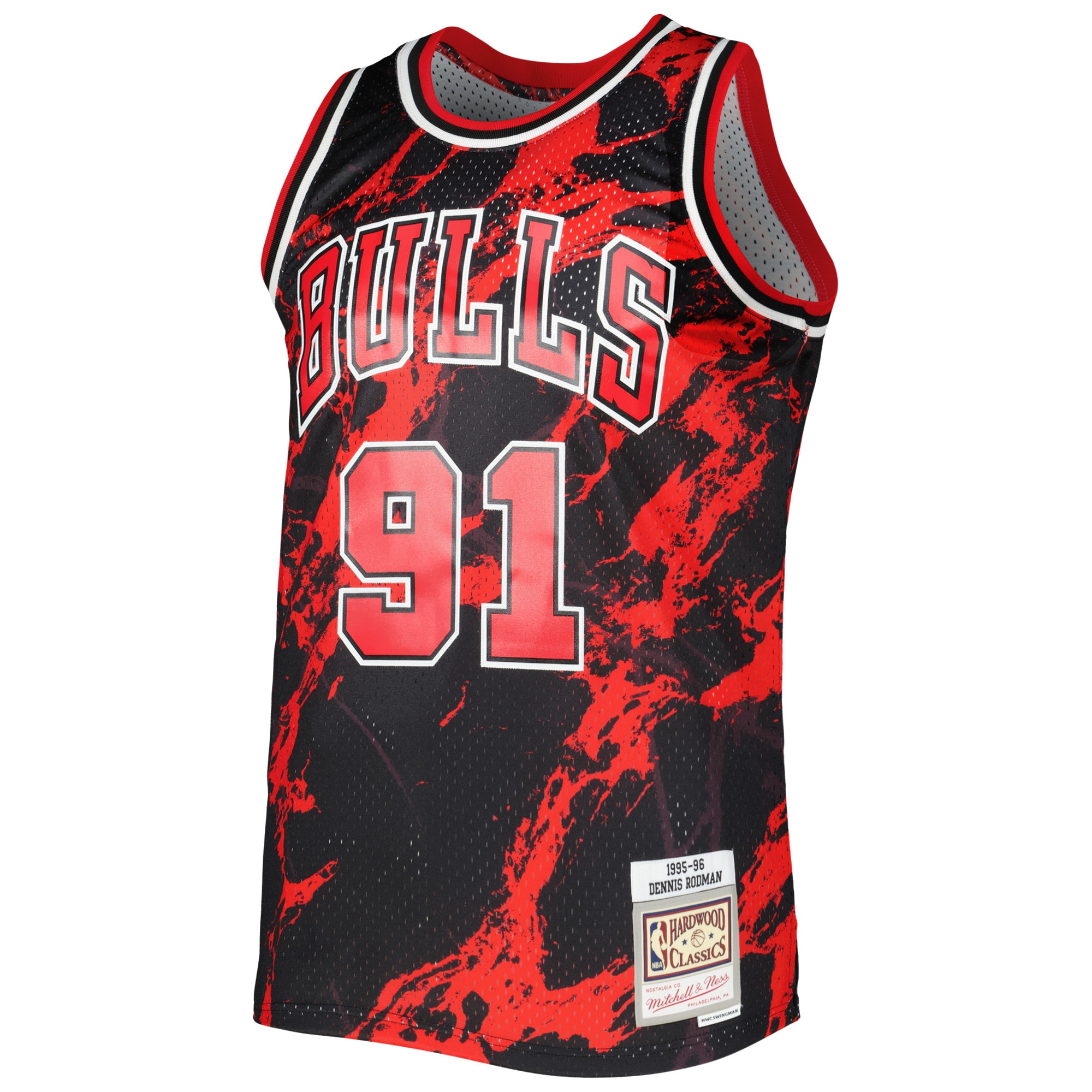 Dennis Rodman Chicago Bulls Mitchell & Ness 1995/96 Hardwood Classics Marble Swingman Basketball Jersey – Black – Jsfangear Basketball Jersey Store