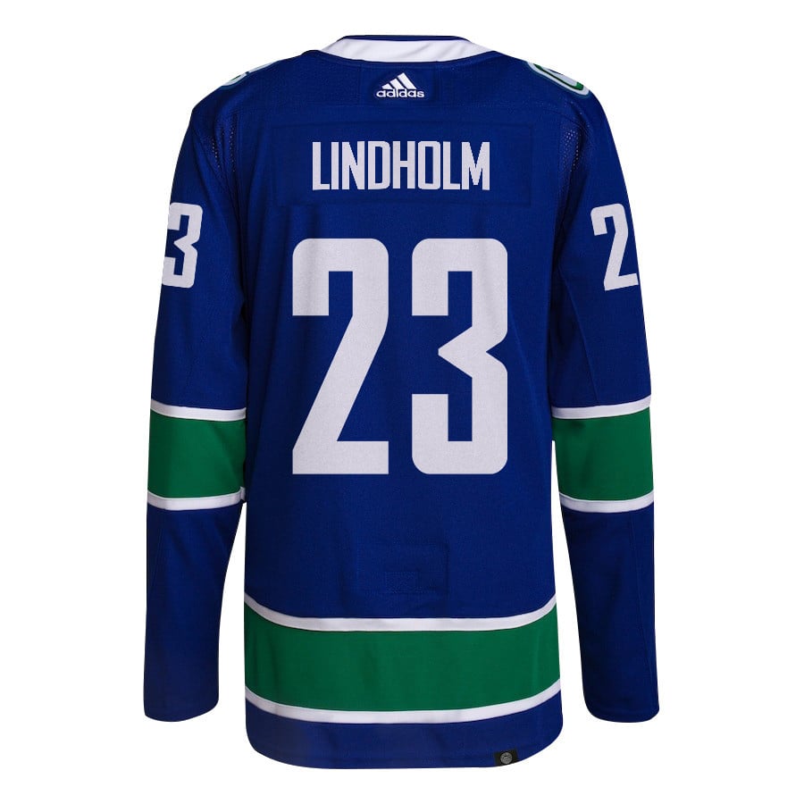 Elias Lindholm 23 Vancouver Canucks 2024 NHL Playoffs Patch Home Hockey Jersey – Men, Blue – JS605