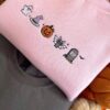 Embroidered Cute Spooky Icons Sweatshirt, Halloween Autumn Slogan Embroidered Sweatshirt