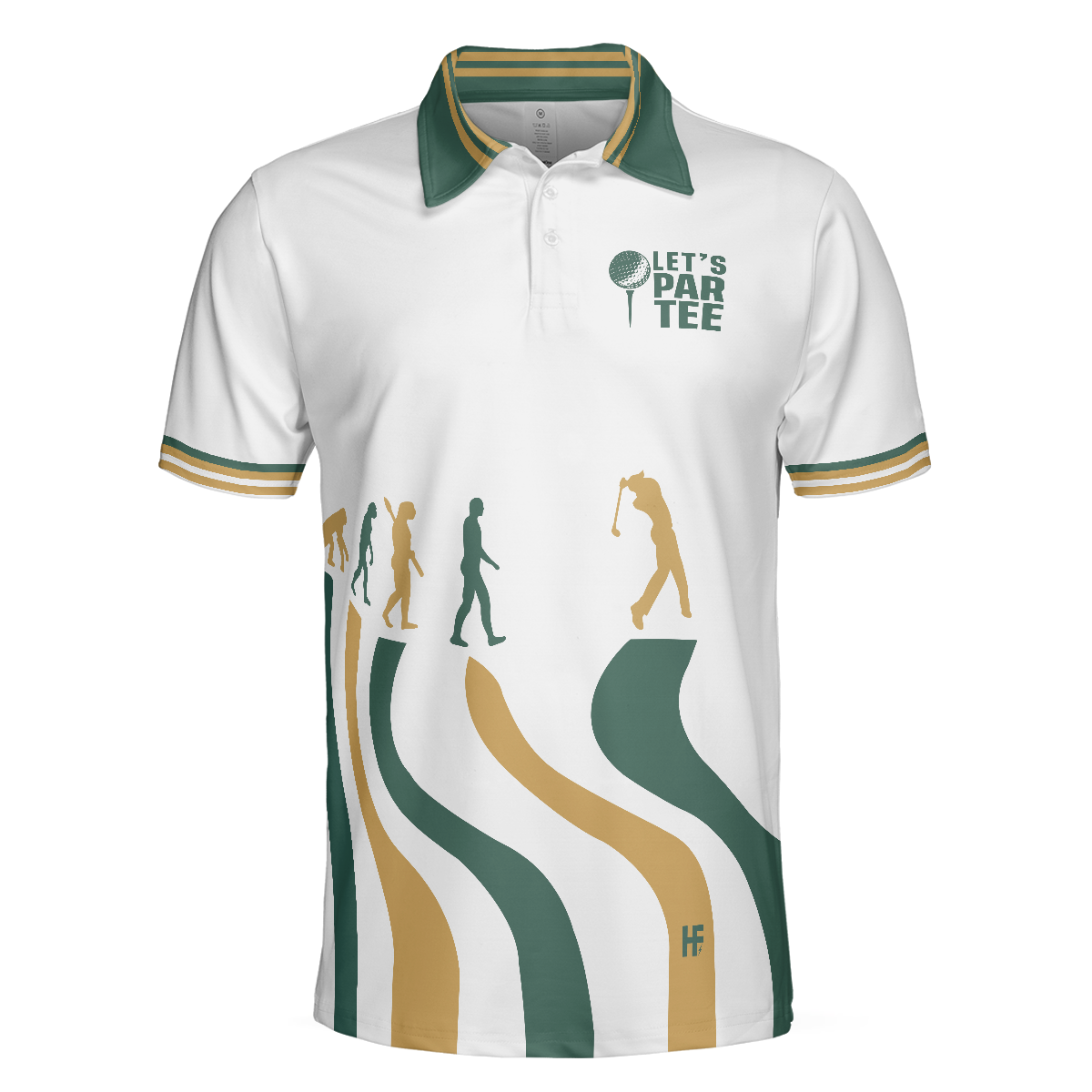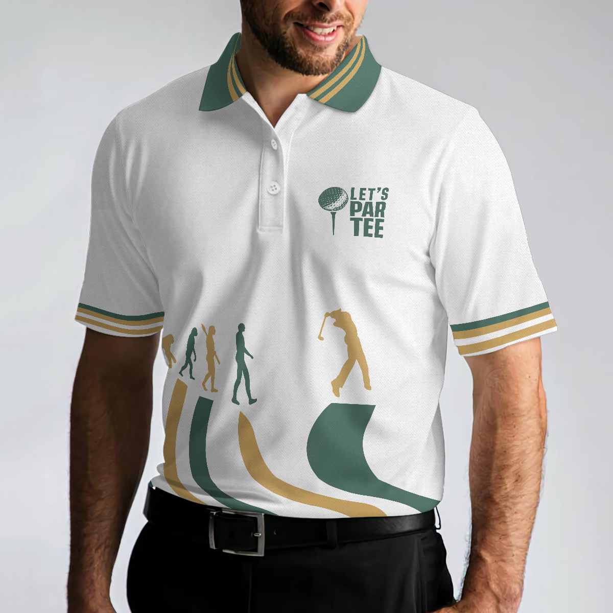 Evolution Of The Golf White Short Sleeve Polo Shirt, Let’s Par Tee Polo Shirt, Best Golf Shirt For Men