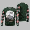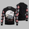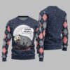 The sweater’s brilliant blue, star-dusted background sets a whimsical winter scene, but the main event is the gloriously grumpy possum, perched on a branch against a full moon. With its mouth wide open in a hiss and a speech bubble emphatically declaring “EWWW PEOPLE,” this creature is your spirit animal for every awkward family dinner and painfully loud office party. The design is perfectly complemented by vintage-inspired pink and grey argyle sleeves, adding a touch of classic ugly sweater charm to its rebellious message. It’s the perfect conversation starter… or ender.