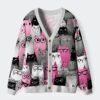 The “Exploring Japan Through Its Unique Trains Ugly Cardigan Sweater” is a dramatically unique piece of knitwear that masterfully clashes cozy comfort with viral, absurdist imagery. The soft, beige and gray background features a high-definition photographic print of two rats holding and seemingly sharing a cigarette, captured with surprising clarity and expression. This unexpected, edgy image is framed by bold, bright pink trim along the V-neck, placket, and cuffs, immediately elevating the absurdity to a statement of fearless fashion. The sleeves are accented with festive, geometric knit patterns in shades of pink and brown, contrasting the central image with cozy, traditional motifs. This design is a masterstroke of ironic comedy and social subversion. It transforms the traditionally wholesome cardigan into a badge of rebellious humor, symbolizing a witty rejection of overly polished perfection and a celebration of the strange, raw, and often chaotic moments of life. It’s a warm, comfortable, and immediately eye-catching piece that is perfect for the meme enthusiast, the punk aesthetic lover, or anyone ready to be the center of a wonderfully intriguing and funny conversation. The button-down style ensures it is versatile for layering over tees or dresses.