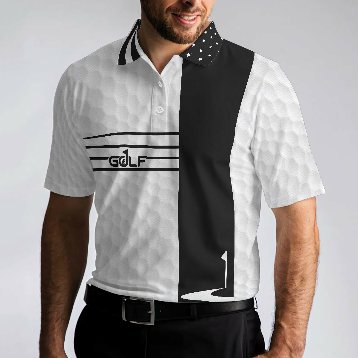Faith Family Fairways American Flag Golf Polo Shirt, Black And White Golf Shirt For Men