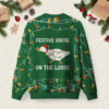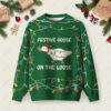 Festive Goose Escape Ugly Christmas Fuzzy Fleece Sweatshirt