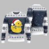 Centered on a classic black and white Nordic-inspired pattern, the star of the show is an impossibly cute, bright yellow rubber duck, fully kitted out for the chilly weather with a cozy striped scarf and a festive Santa hat. This isn’t just an article of clothing; it’s a statement piece that says you’re here for a good time and don’t take the holiday season too seriously. Perfect for ugly sweater contests, office parties, or cozy family gatherings, this sweater is your ticket to becoming a holiday legend.