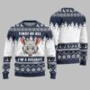 The design features a stunningly detailed, high-resolution graphic of an opossum—an animal celebrated for its quirky and resilient nature. Its wide eyes and endearing face stare out, daring anyone to question the bold statement printed around it: “FIRST OF ALL” sits proudly above, with “I’M A DELIGHT” confidently declared below. The brilliant blue and crisp white color scheme, complete with classic Nordic-inspired patterns of snowflakes, trees, and reindeer, creates the perfect “ugly sweater” backdrop for this hilarious, modern twist. It’s the ideal blend of traditional holiday aesthetics and contemporary, meme-fueled comedy.