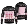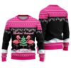 This Flamingo Happy Holidays Ugly Christmas Sweater isn’t your grandma’s Christmas sweater! This festive knitwear features a delightful flock of flamingos decked out in Santa costumes, striking playful poses against a backdrop of classic Christmas motifs. With its vibrant colors and quirky design, this sweater is guaranteed to turn heads and spark conversations at your next holiday gathering.