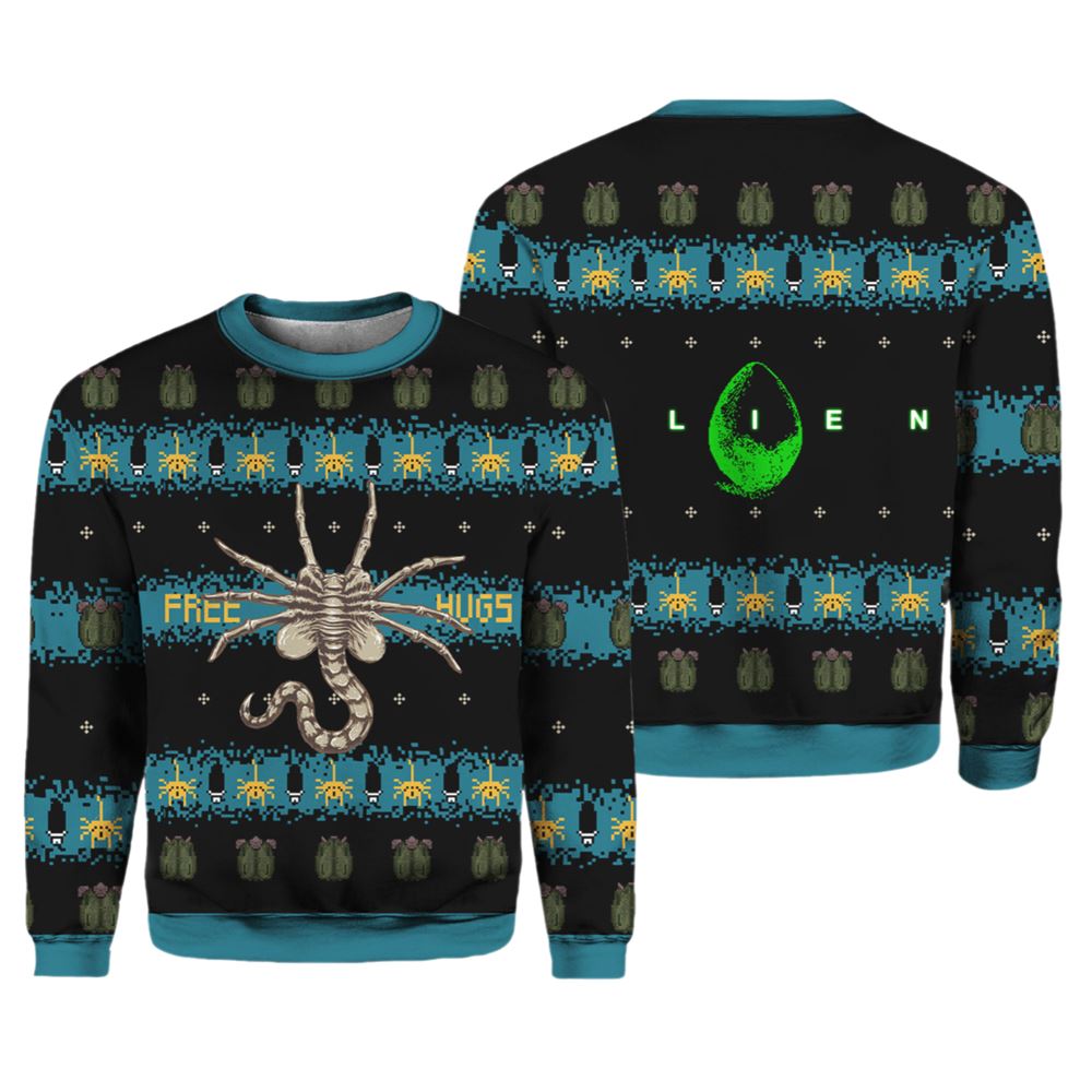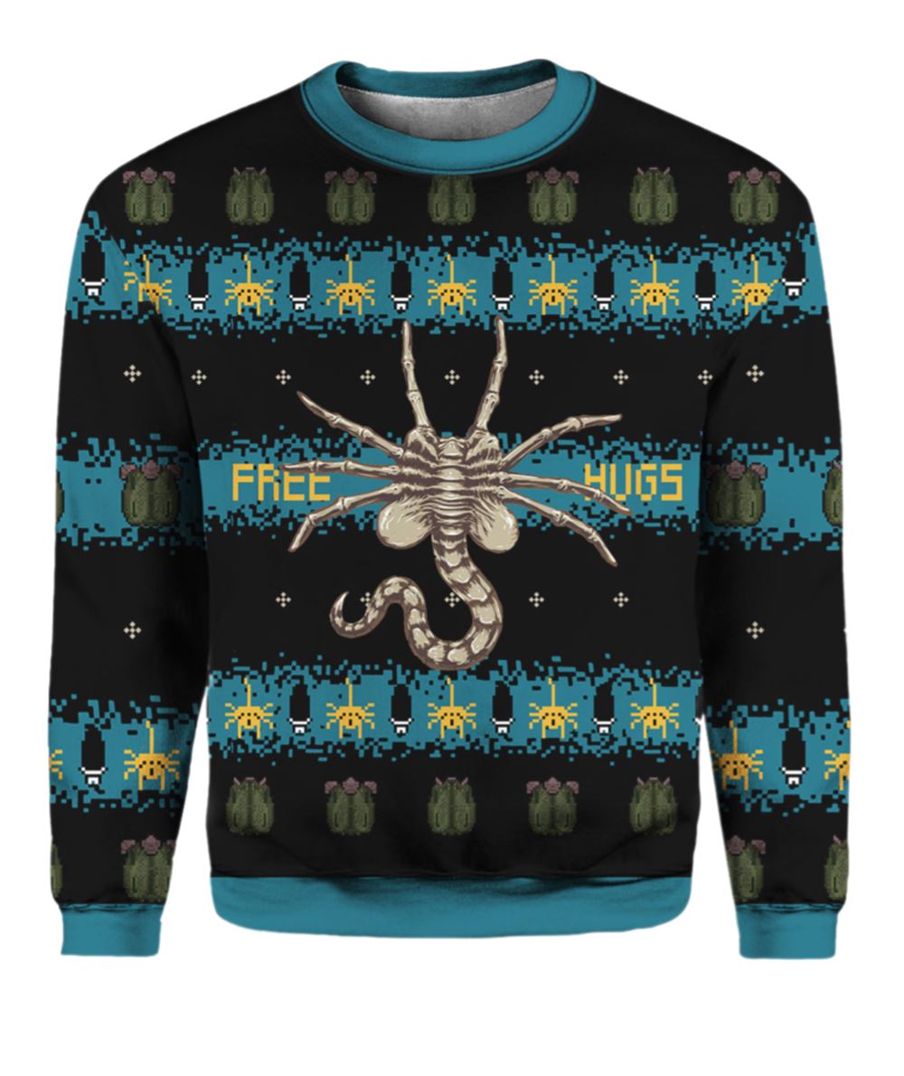 Free Hugs Alien Facehugger Ugly Christmas Sweater – Embrace the Festive FearÂ
