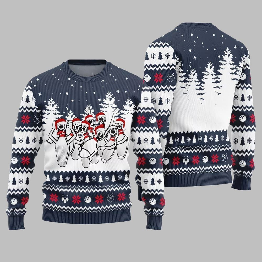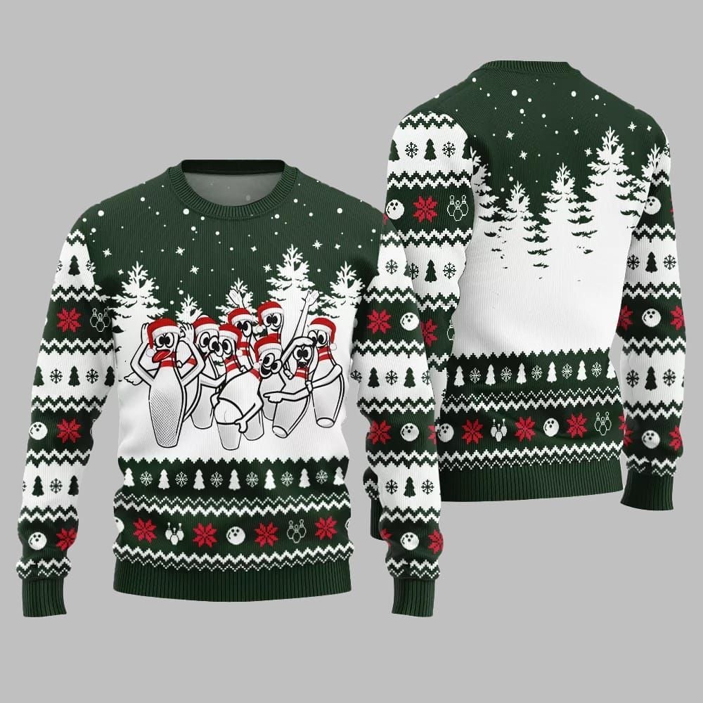 Funny Dancing Bowling Pins Ugly Sweater 2025 Christmas | Hit a Holiday StrikeÂ