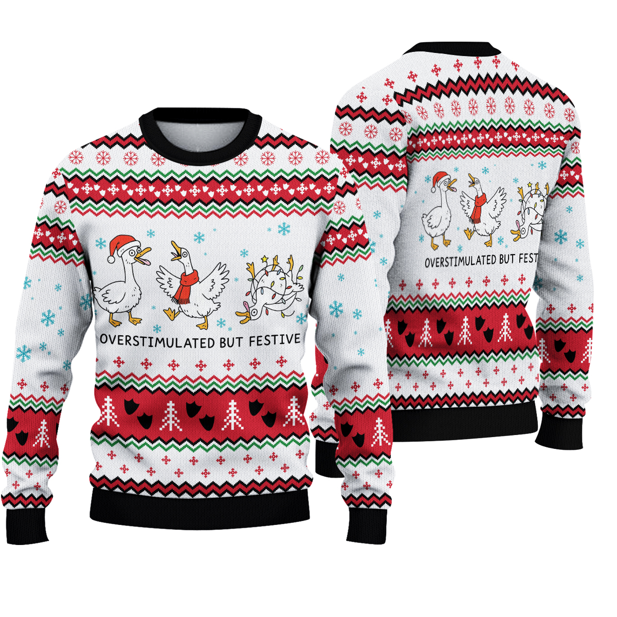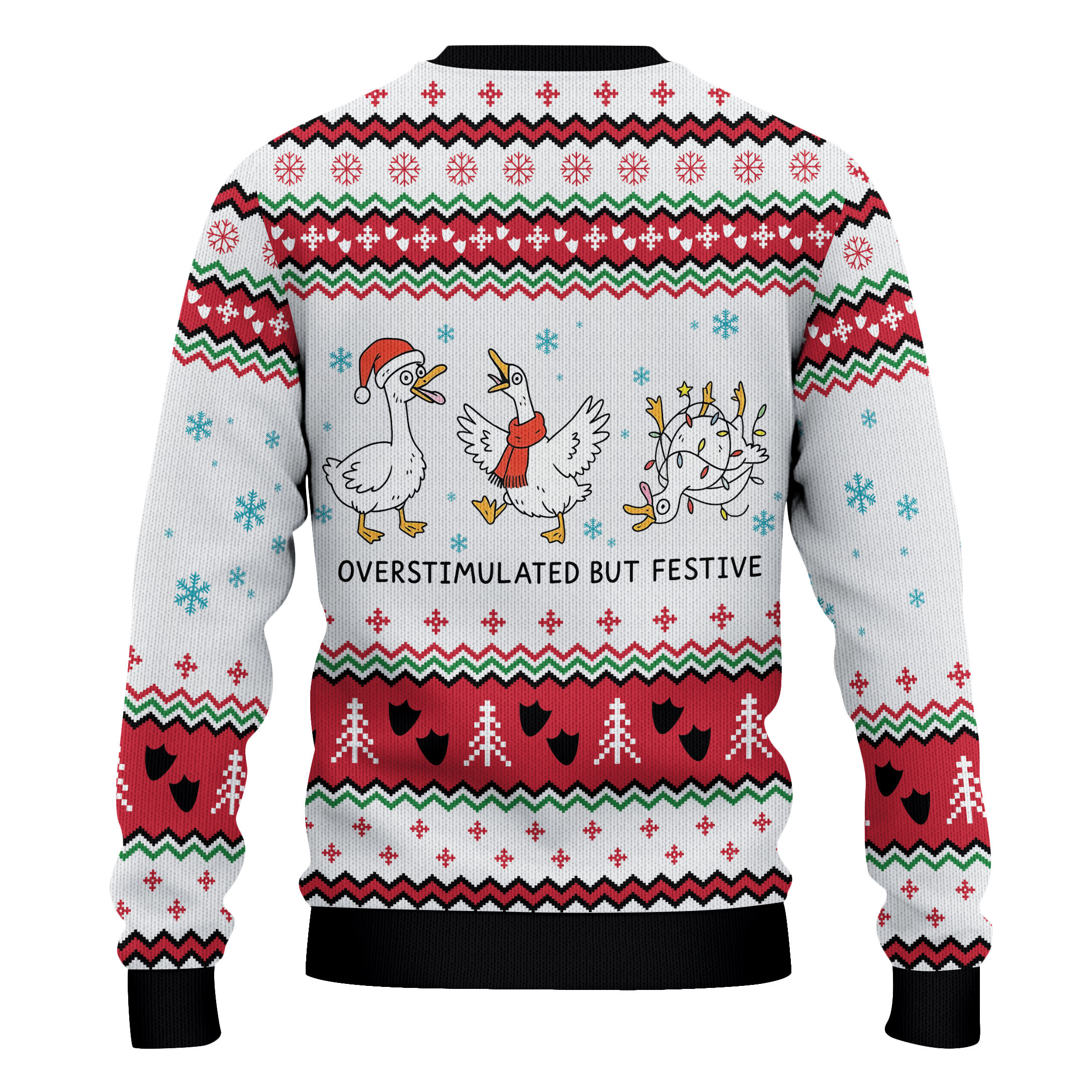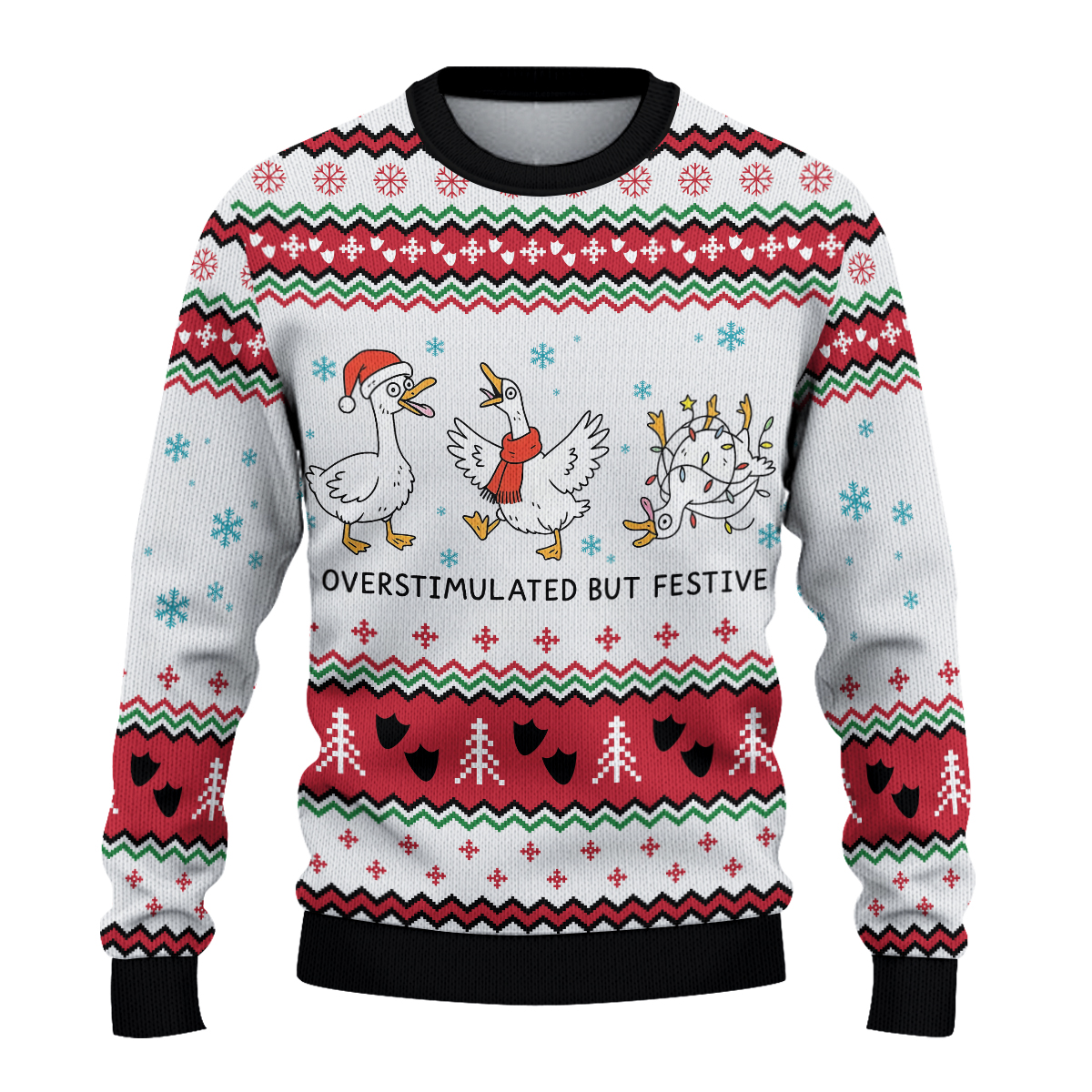 Funny Goose Christmas Sweater, Holiday Lights Duck Pullover, Cute Farm Bird Xmas Jumper, Ugly Sweater Party Outfit for Men & Women