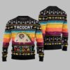 This vibrant green and red sweater takes the classic “ugly Christmas sweater” style and fills it with potent, adult humor. The design features a knit-like background with traditional holiday elements like snowflakes and Christmas trees. The centerpiece is a hilarious graphic of Santa Claus—looking a little tipsy—hugging a giant glass of whiskey. The text above and below the image delivers the perfect pun: “WE WHISKEY YOU A MERRY CHRISTMAS.” The meaning of this design is rooted in witty, grown-up humor and the celebration of holiday indulgence. It playfully suggests that the best way to get through the holiday season is with a sense of humor and a good quality spirit. It transforms Santa from a figure of childish wonder into a relatable adult, signaling that you appreciate the boozier side of holiday cheer.