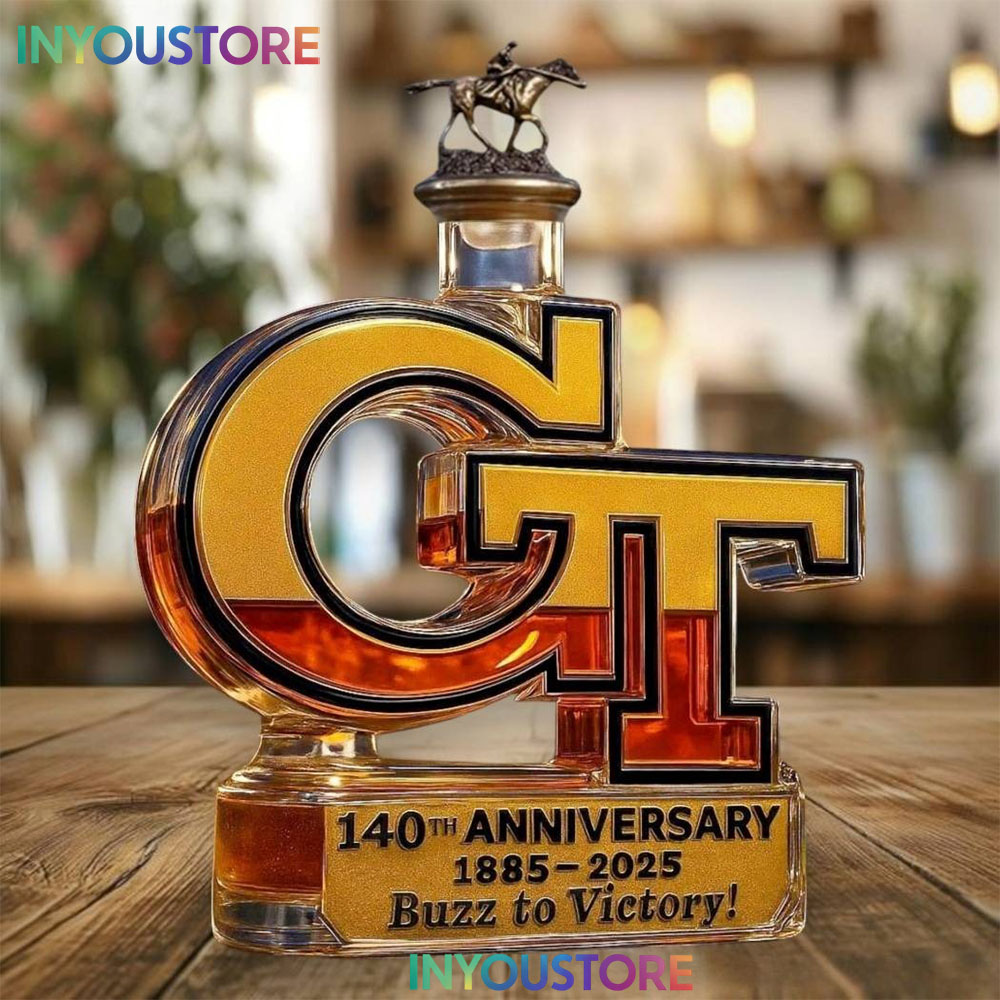 Crafted from high-quality glass with detailed 140th Anniversary–themed artwork and a bold collegiate design, this bottle is perfect for holding whiskey, bourbon, or other favorite spirits. Whether displayed in a home bar, office, or fan cave, it stands as a meaningful tribute to decades of Georgia Tech achievement.