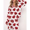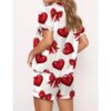 Glitter Heart Valentine Satin Pajama Set For Women