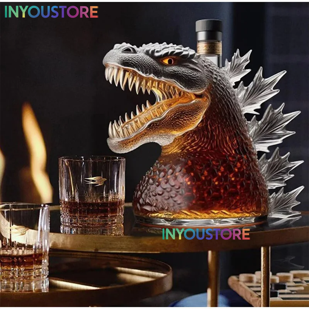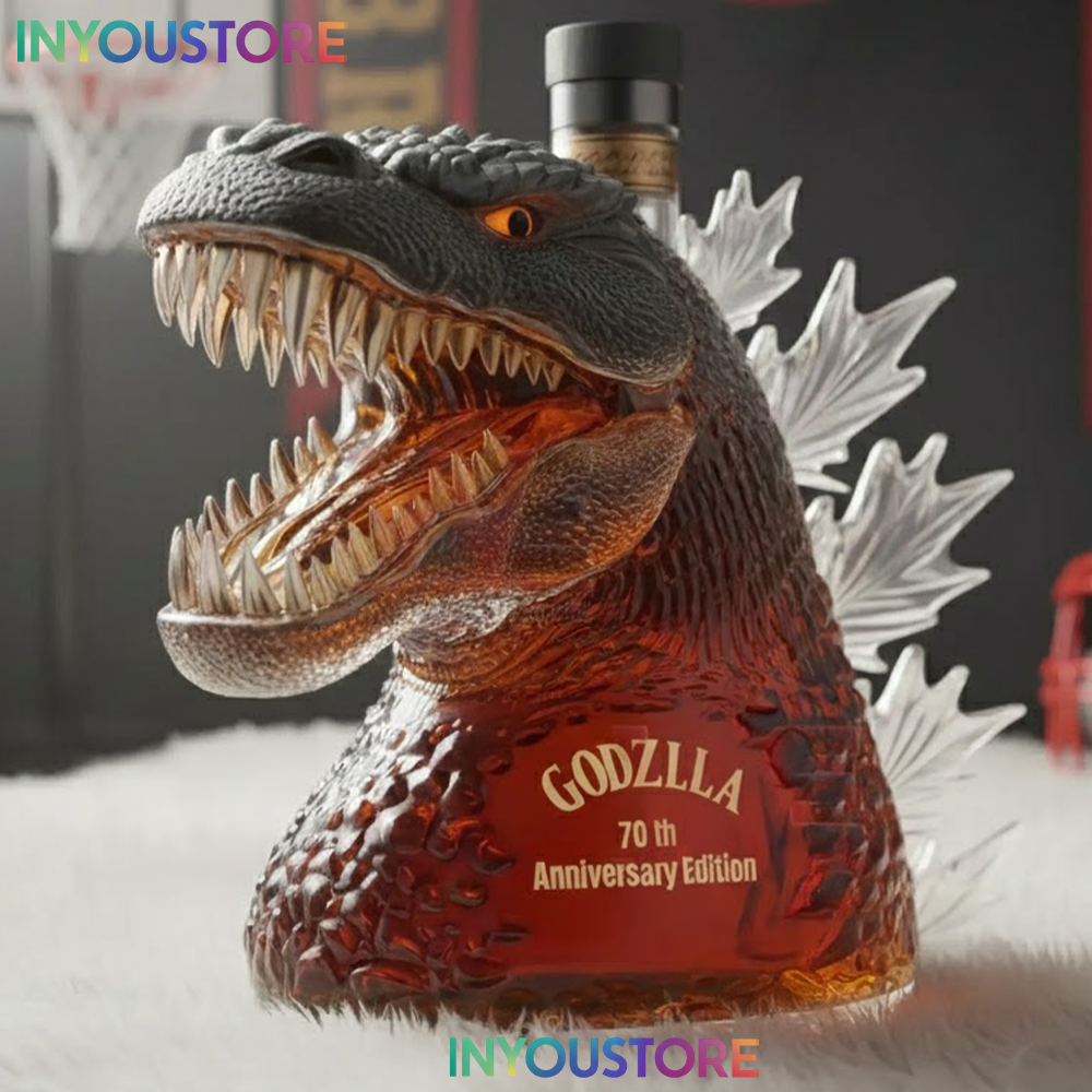 Crafted from high-quality glass with detailed Godzilla-themed artwork and an aggressive, cinematic aesthetic, this bottle is perfect for holding whiskey, bourbon, or other favorite spirits. Whether displayed in a home bar, game room, or collector’s shelf, it instantly commands attention and sparks conversation.