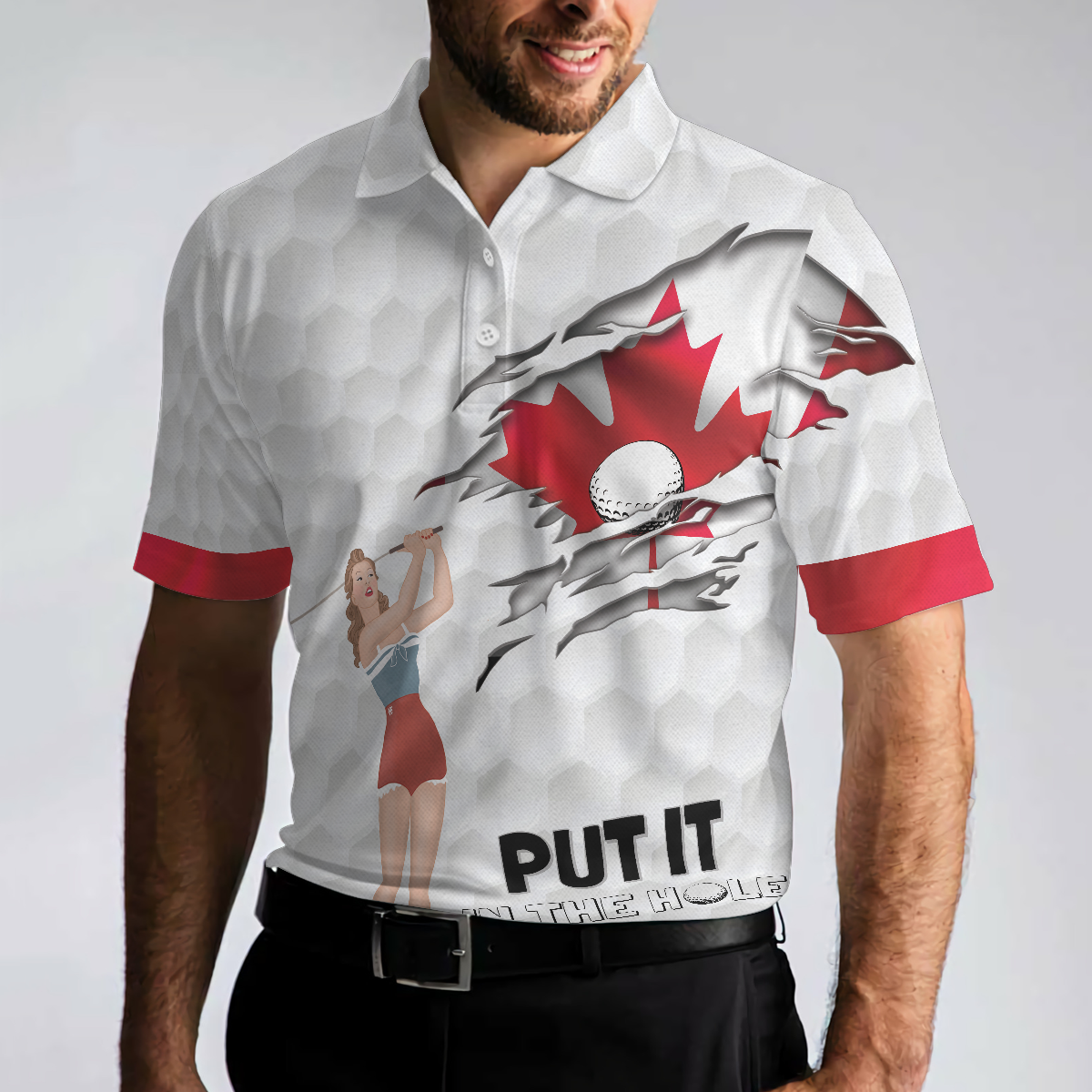 Golf Canada Flag Pin Up Girl Polo Shirt, Canadian Golf Shirt For Men