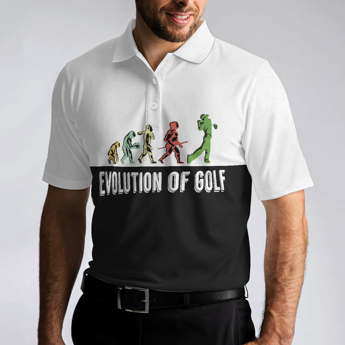 Golf Evolution Vintage Short Sleeve Polo Shirt, Elegant Back And White Polo Shirt, Best Golf Shirt For Men