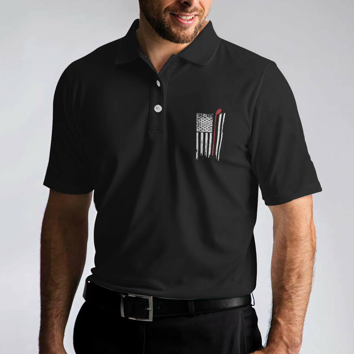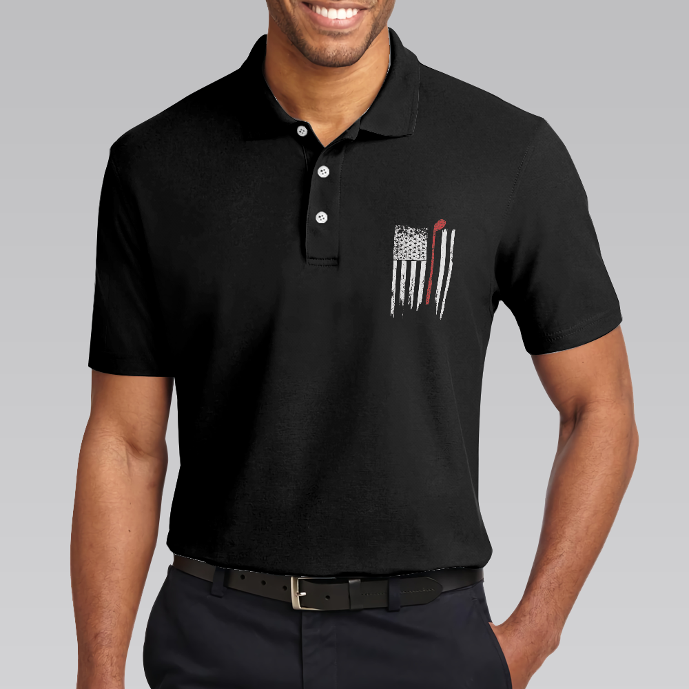 Golf Nation Short Sleeve Golf Polo Shirt, Black And White American Flag Polo Shirt, Patriotic Golf Shirt For Men