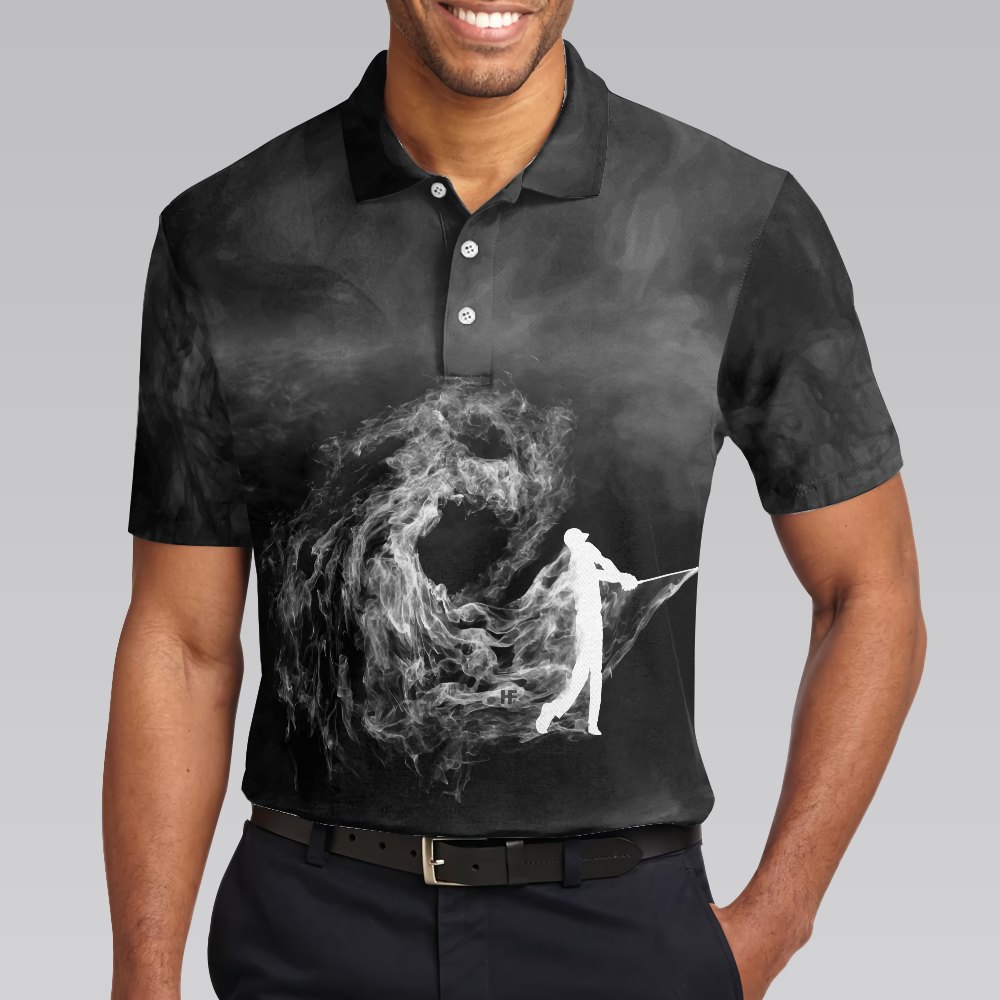 Golfer On Smoke Background Polo Shirt, Black Smoke Golfing Polo Shirt, Best Golf Shirt For Men