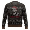 The design blends elements of a traditional holiday sweater with a cinematic twist, featuring snowflakes, Christmas trees, and a festive color scheme. A perfect blend of pop culture and holiday spirit, this sweater lets you showcase your love for both classic film and the holiday season.