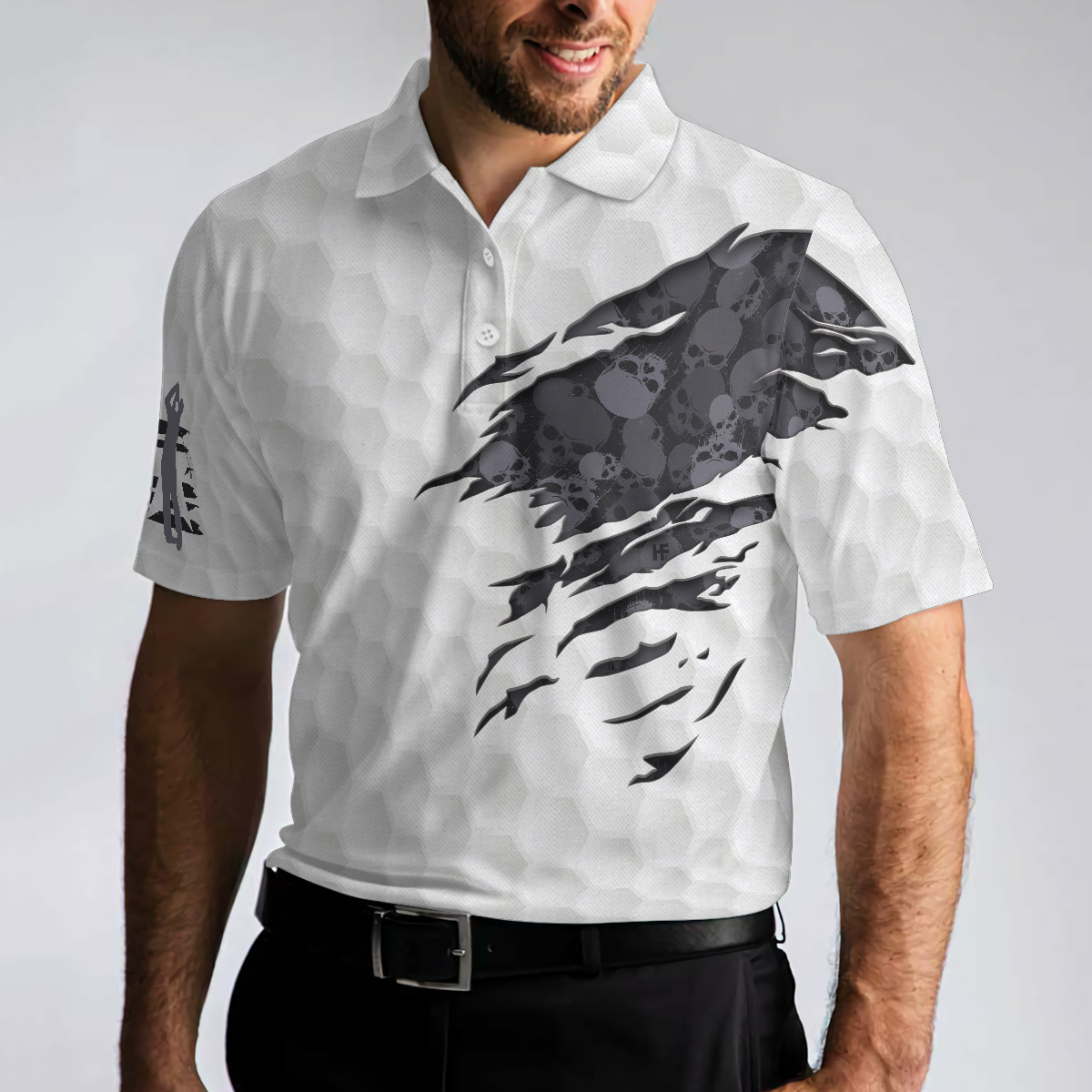 Be the first to review “Grip It N’ Rip It Golf Ball Texture Short Sleeve Polo Shirt, Ripped Skull Pattern Polo Shirt, Best Golf Shirt For Men”