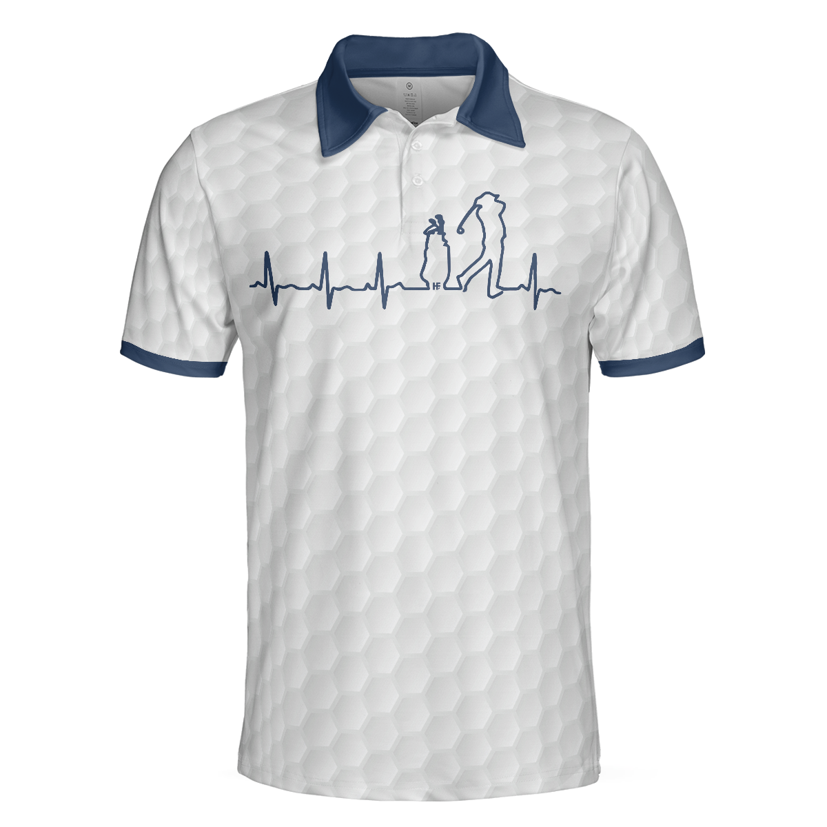 Heartbeat Golfer White And Navy Golf Polo Shirt For Men, Best Gift For Golfers