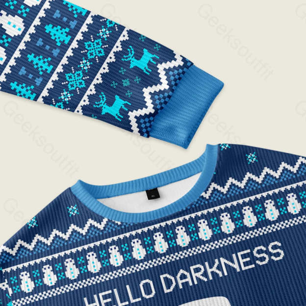 Hello Darkness My Old Friend Blue Ugly Christmas Fuzzy Fleece Sweatshirt