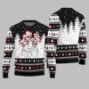 Get ready to knock down the competition at your next holiday event with the Hilarious Bowling Ugly Sweater Christmas 2025. This isn’t just another festive top; it’s a tribute to every bowler’s favorite pastime, wrapped up in a perfectly “ugly” Christmas design. The centerpiece of this sweater is a comically expressive group of ten bowling pins, huddled together in festive Santa hats. Their wide-eyed, panicked expressions are hilariously relatable, capturing that nail-biting moment just before the ball makes impact. Set against a crisp white and forest green backdrop, complete with snow-covered pines and classic Nordic patterns, this sweater is the perfect blend of holiday spirit and niche humor.