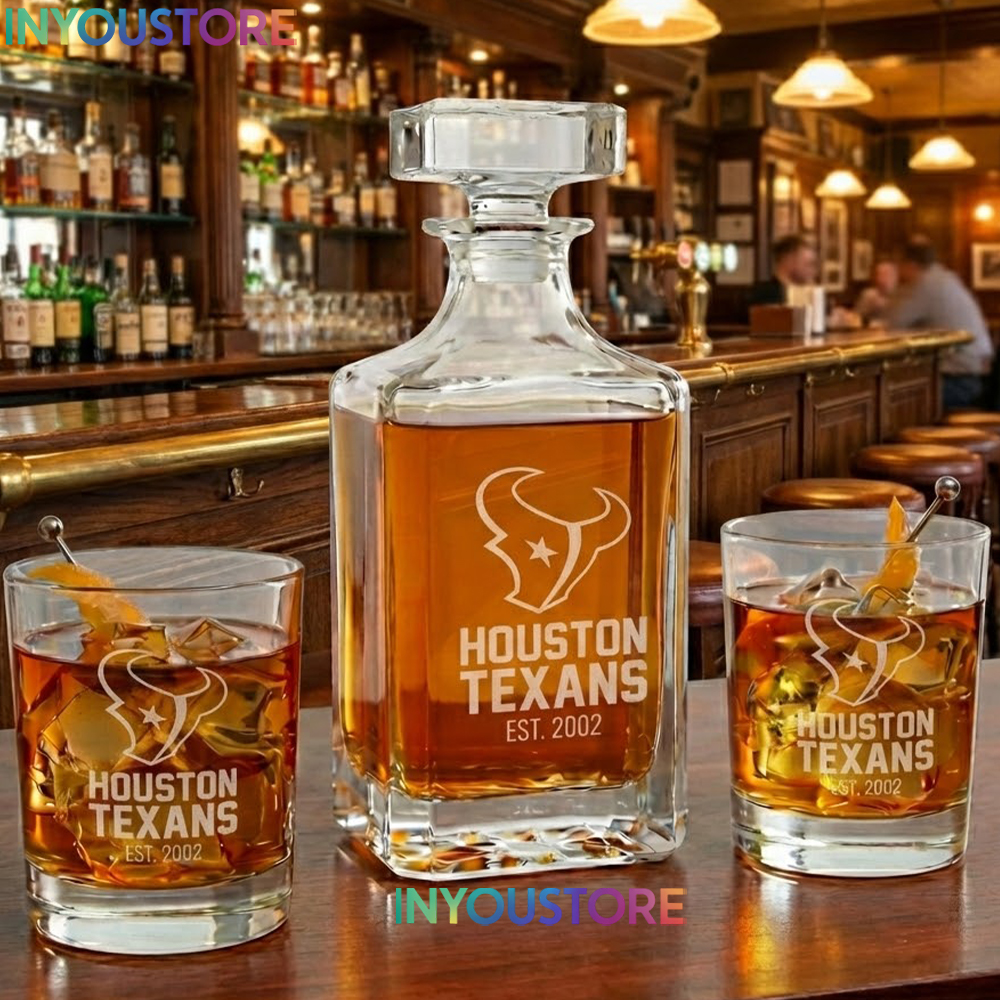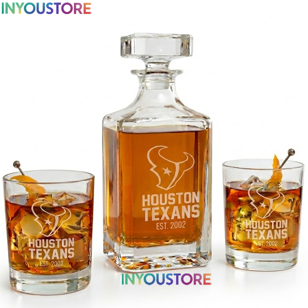 Showcase your H-Town pride with the ultimate home bar centerpiece! Celebrate the relentless spirit of the Lone Star State with this premium Houston Texans Whiskey Decanter Set. This masterfully crafted set features a high-clarity square decanter and two matching rocks glasses, each precision-etched with the iconic Texans bull logo and “Est. 2002” founding year. Whether you’re toast to a victory at NRG Stadium or looking for a sophisticated addition to your executive study, this set brings the grit and passion of Houston football directly to your collection.