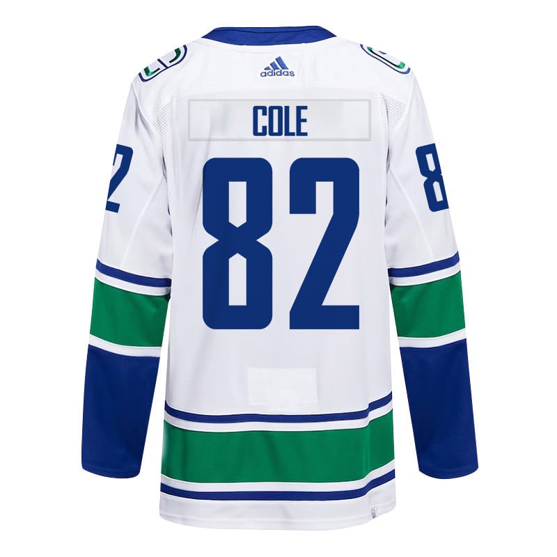 Ian Cole 82 Vancouver Canucks 2024 NHL Playoffs Patch Away Hockey Jersey – Men, White – JS933