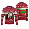 Get ready to spread holiday cheer with a humorous twist by donning the I’ll Be Home For Christmas Trump Ugly Christmas Sweater . Featuring a bold design with a caricature of a well-known figure dressed in a bright red suit and Santa hat, this sweater captures attention instantly. The backdrop showcases a snowy scene outside the White House, adding a playful touch to this political-themed holiday apparel.