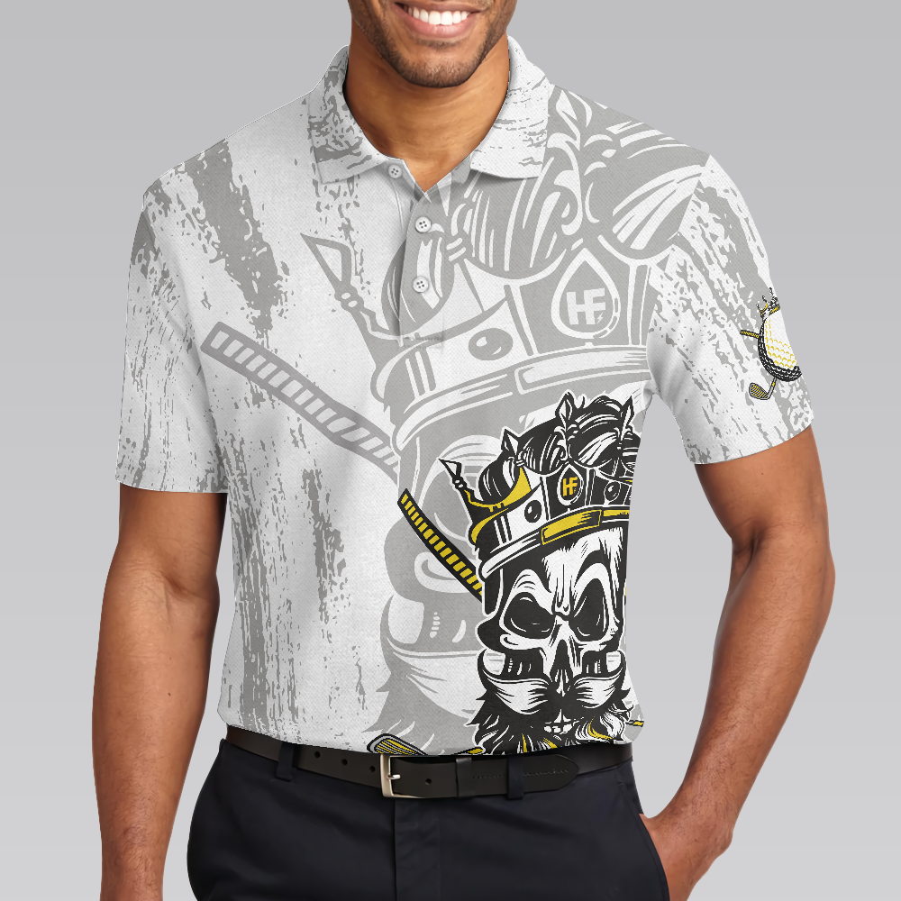 I’m The King Of The Course Golf Polo Shirt, Black And White Skull Golf Shirt For Men