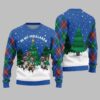 The front of this eye-catching green sweater features three adorable raccoons in Santa hats, gleefully exchanging gifts around a brightly lit Christmas tree. Arched above this chaotic-good scene is the bold declaration “IN MY FERAL AREA,” letting everyone know you’re here for a fun, unfiltered holiday season. With its classic snowy accents and festive vibe, it perfectly captures the spirit of an ugly Christmas sweater while being undeniably stylish and on-trend for 2025.