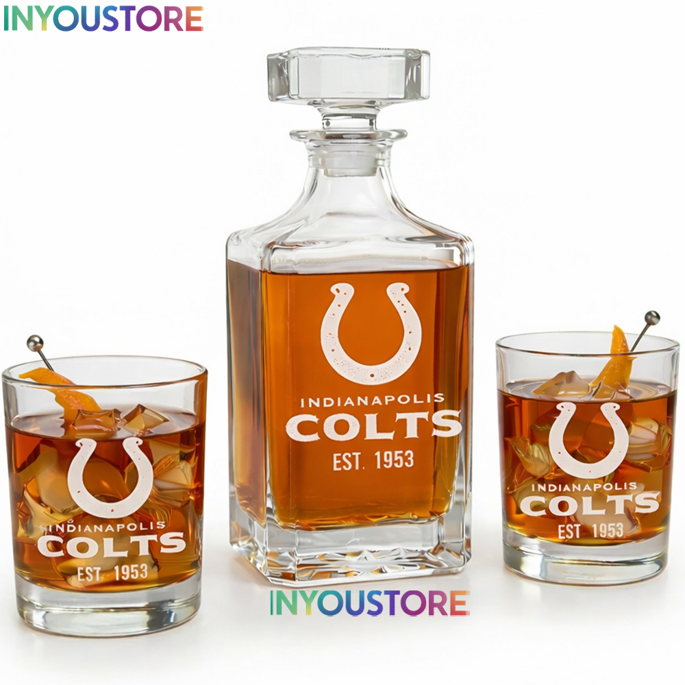 Showcase your blue and white pride with the ultimate home bar centerpiece! Celebrate the legendary heritage of Indiana football with this premium Indianapolis Colts Whiskey Decanter Set. This masterfully crafted set features a high-clarity square decanter and two matching rocks glasses, each precision-etched with the iconic horseshoe logo and “Est. 1953” founding year. Whether you’re toast to a victory at Lucas Oil Stadium or looking for a sophisticated addition to your executive study, this set brings the winning tradition of the Colts directly to your collection.